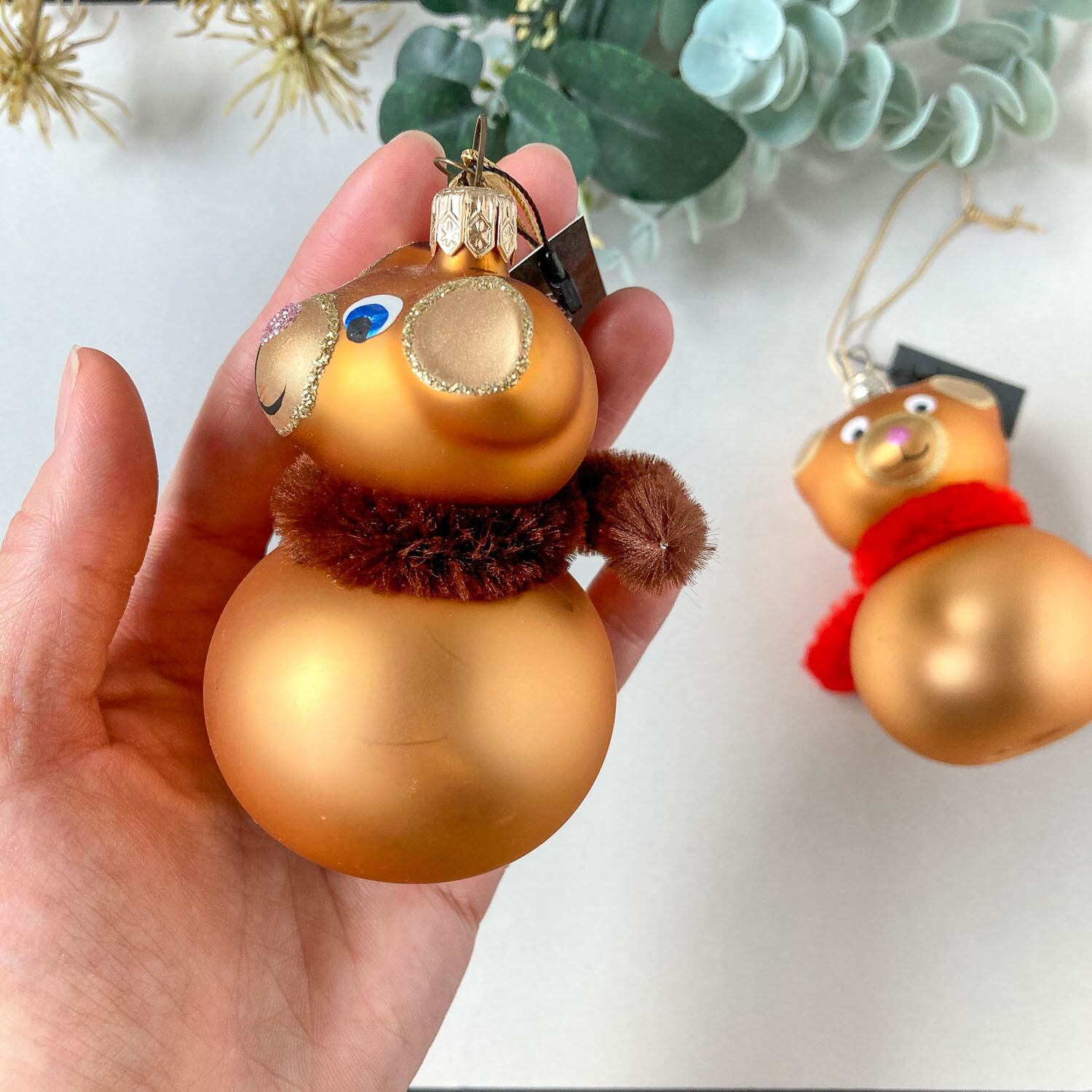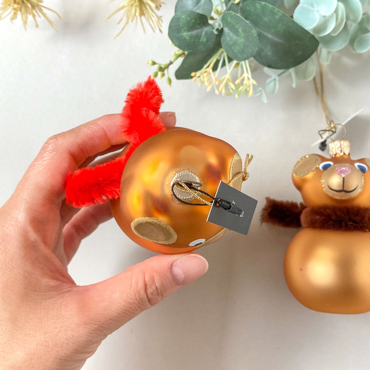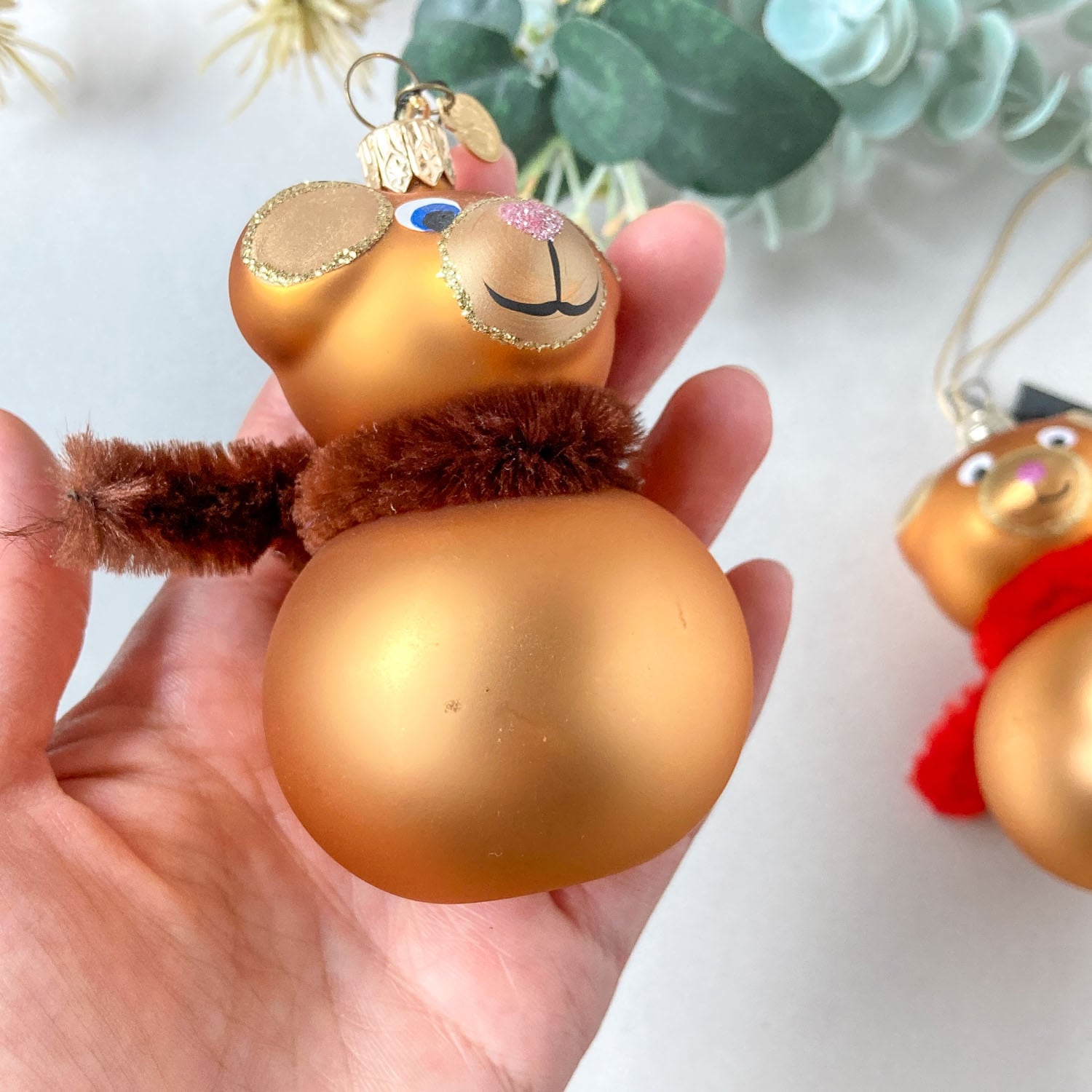 ガラス製のテディベアモチーフのオーナメント。