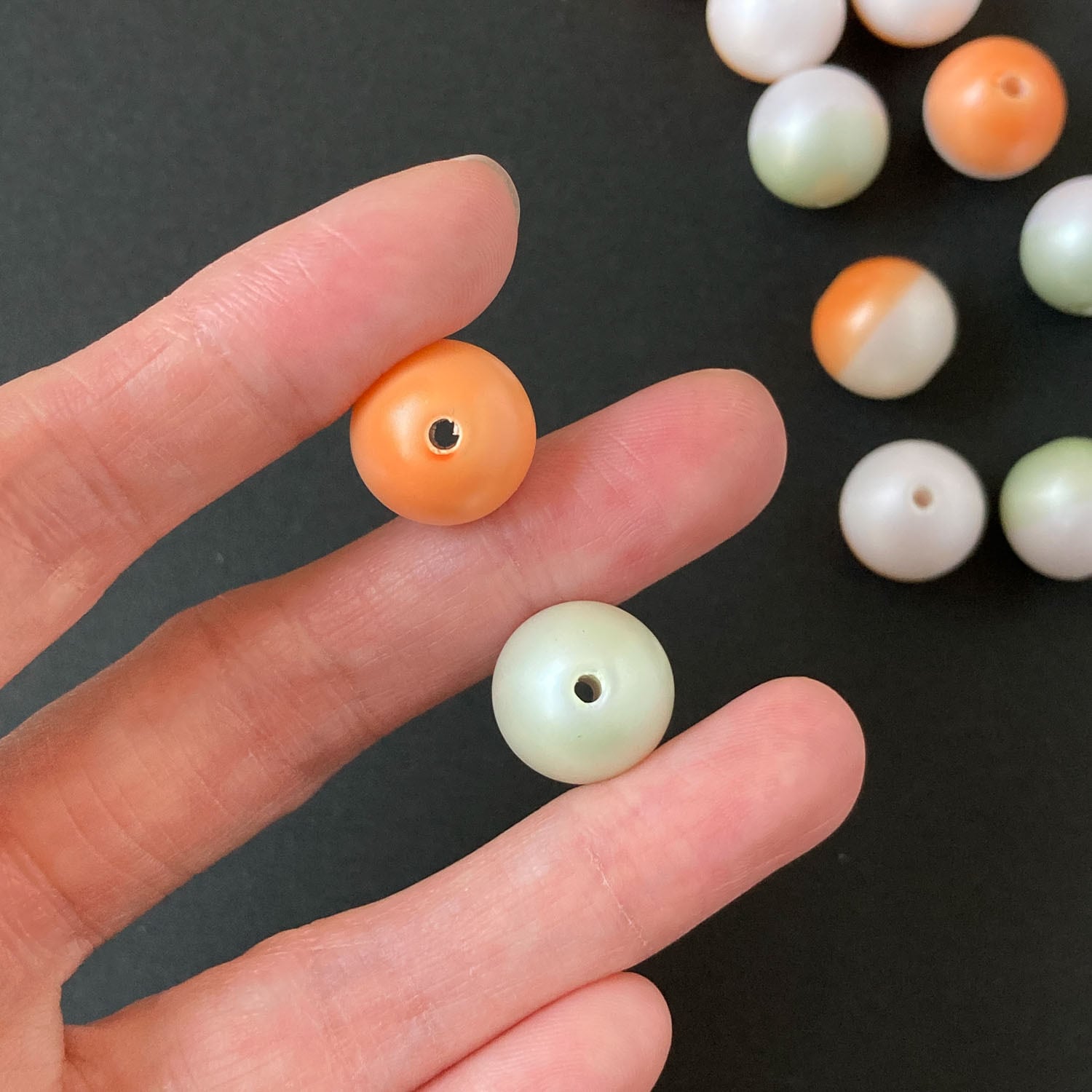 ハーフカラーのパールビーズ