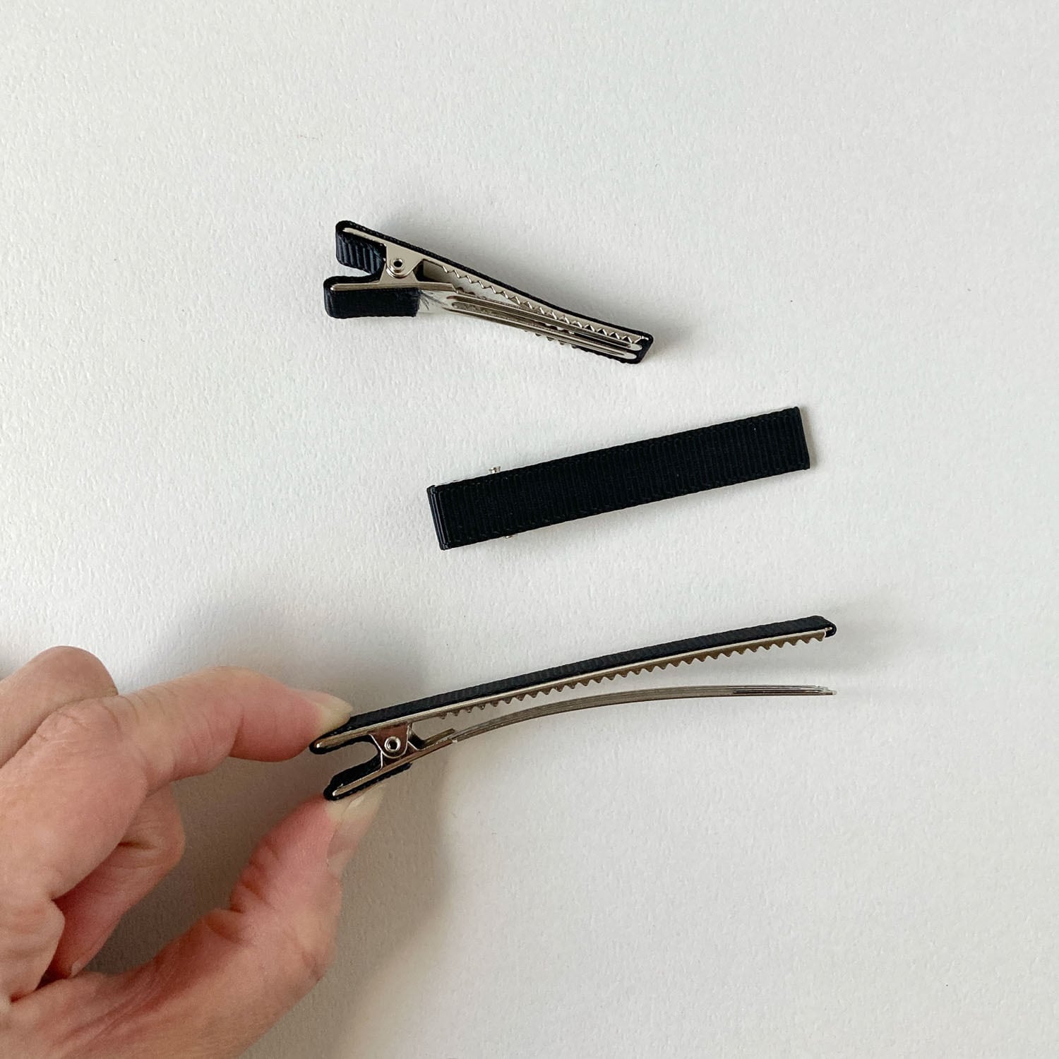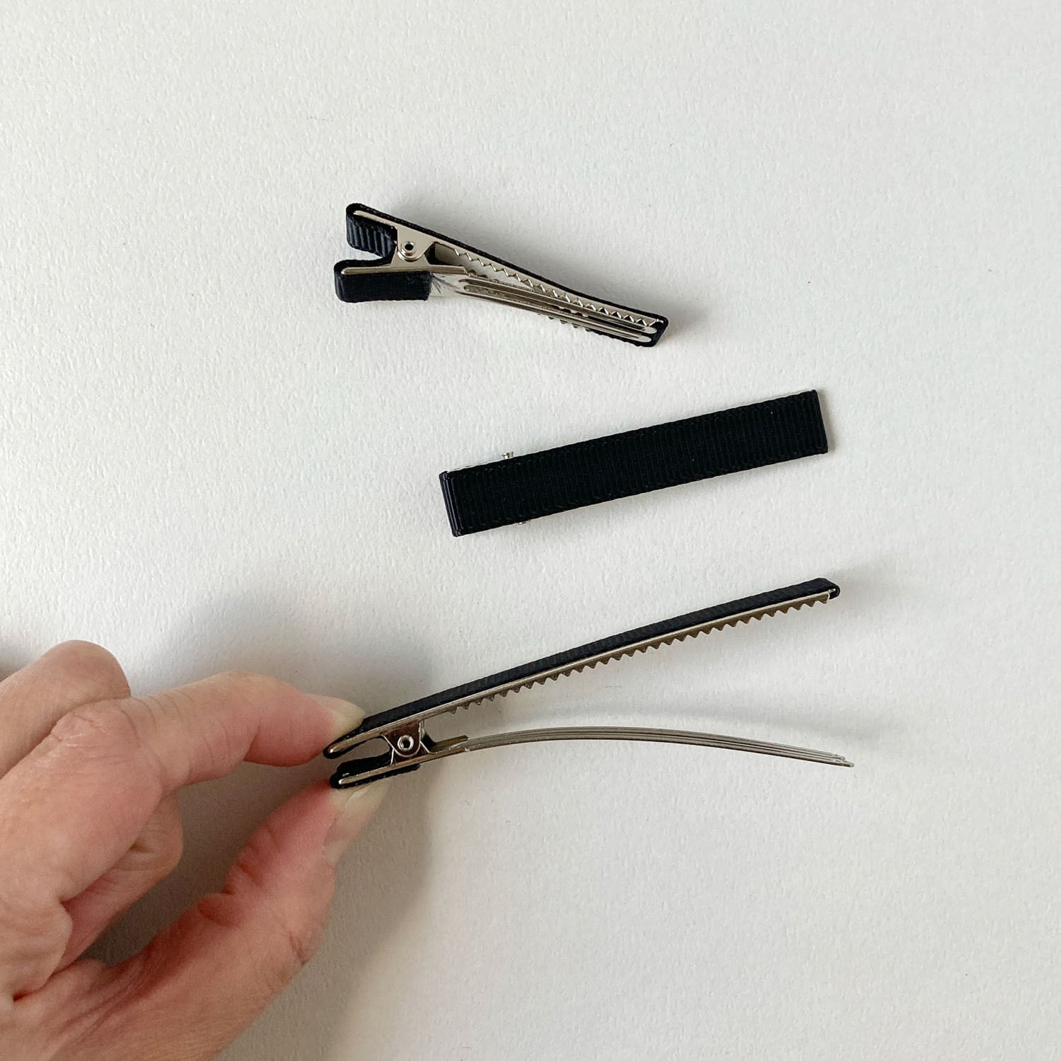 ヘアクリップ金具 布貼り 黒(50mm/60mm/80mm) ※セール対象外