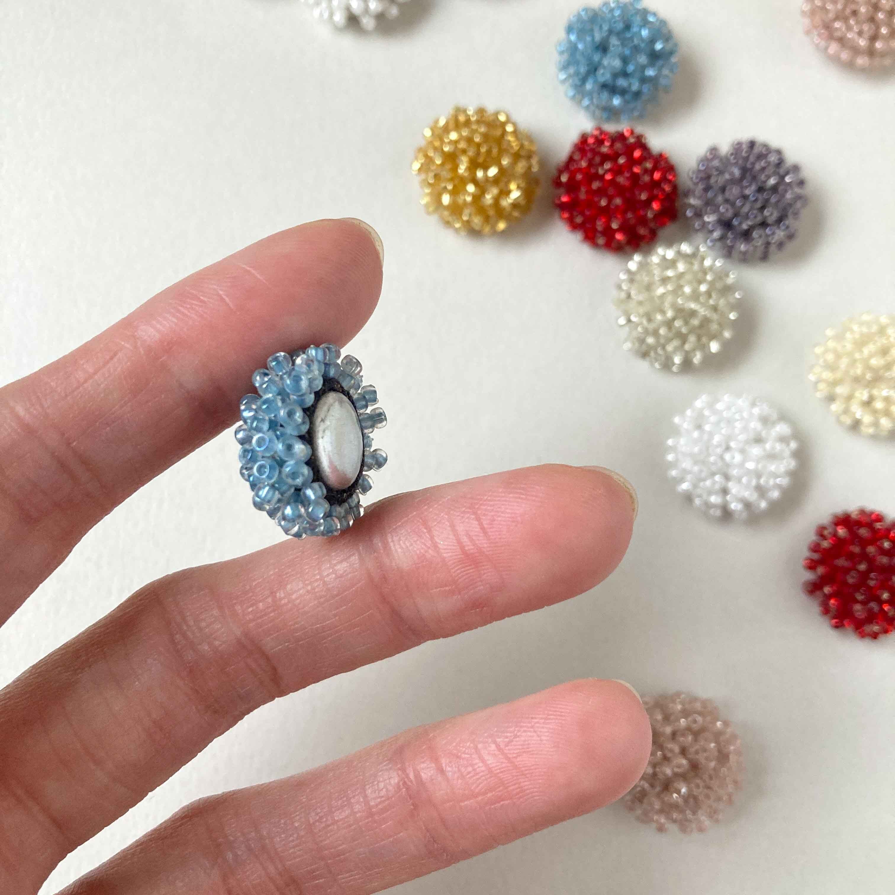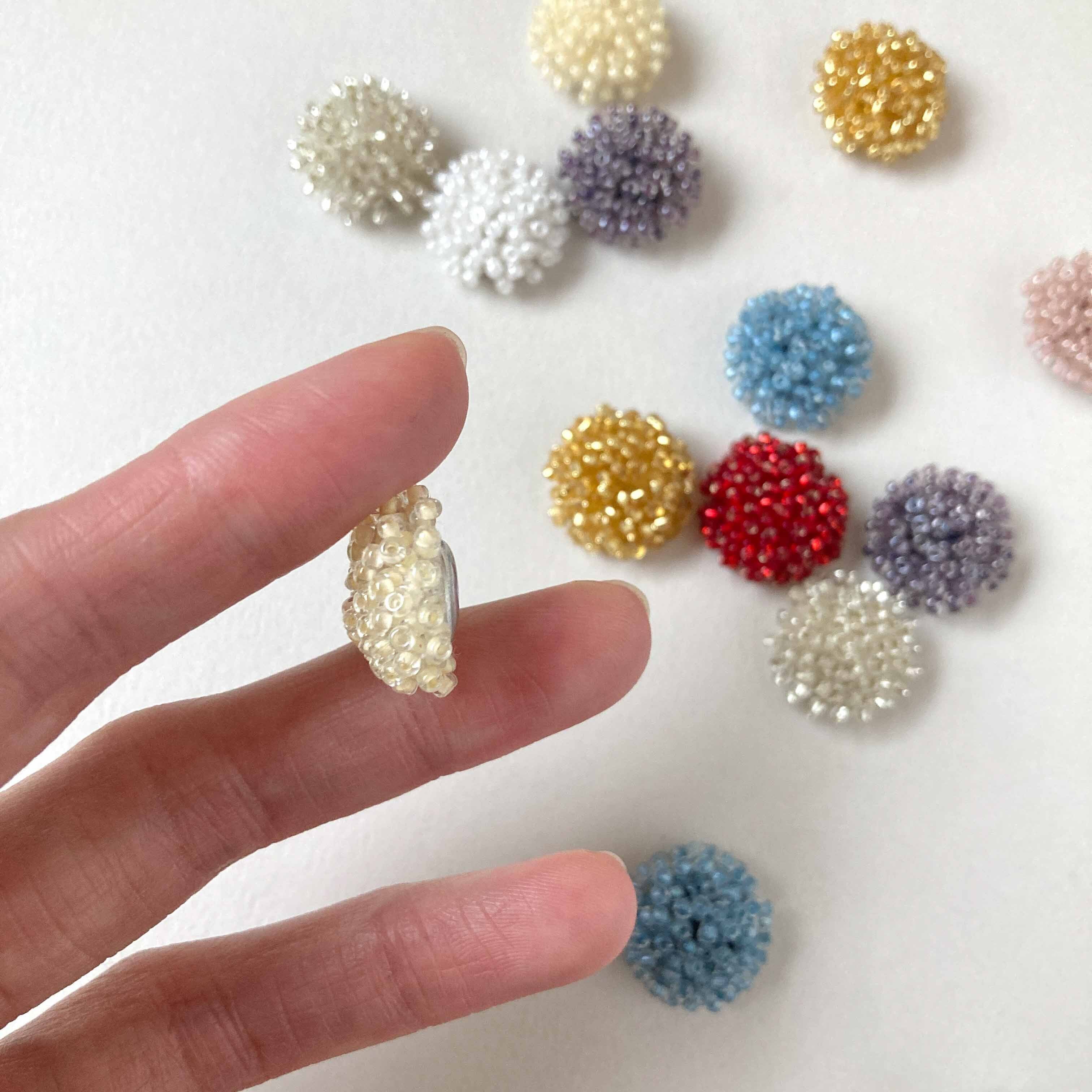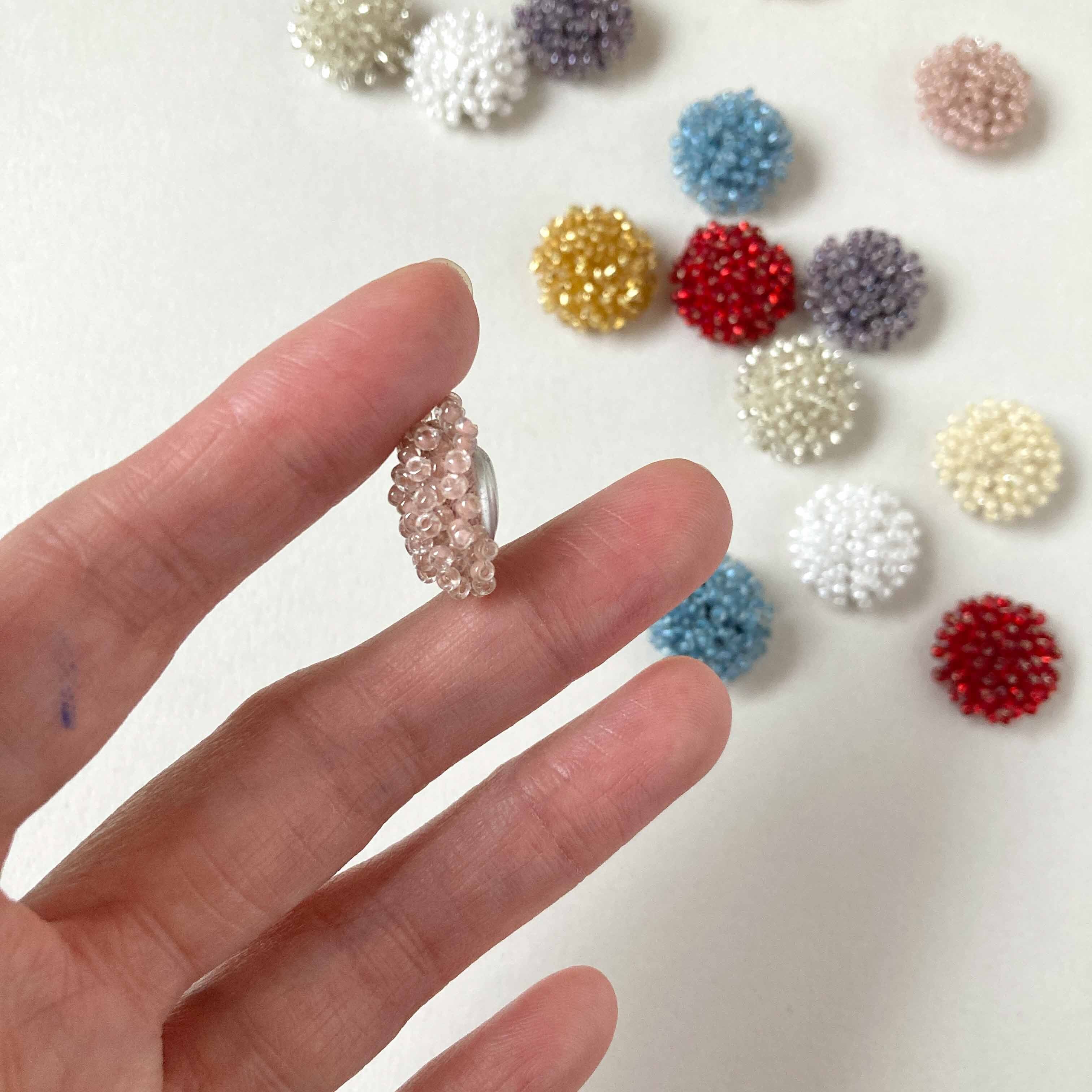 人気のDuaオリジナル ビーズカボション。 粒揃いのよいMIYUKI社製のデリカビーズを使用してリニューアル。 明るめの使いやすい色をそろえました。 Mサイズもございます。 →Duaオリジナル MIYUKIビーズカボションM(25mm) https://shop.dua.co.jp/items/134288405 既存のビーズカボションはこちら。 →Duaオリジナル ビーズカボションS(20mm) https://shop.dua.co.jp/items/27632177 ■販売単位:1個 ■種類:A白、Bクリーム、C薄ピンク、D赤、E紫、F水色、Gゴールド、Hシルバー ■サイズ:約20×20×10mm ■素材:ガラスビーズ、メタル、布 ■輸入元:インドネシア ■色味、模様、形、大きさに個体差がございます。 ■素材の性質上、スレ、傷、歪な形、色むらがございます。 汚れの付着がある場合がございます。 予めご了承ください。 ■商品コード:OR2311001S