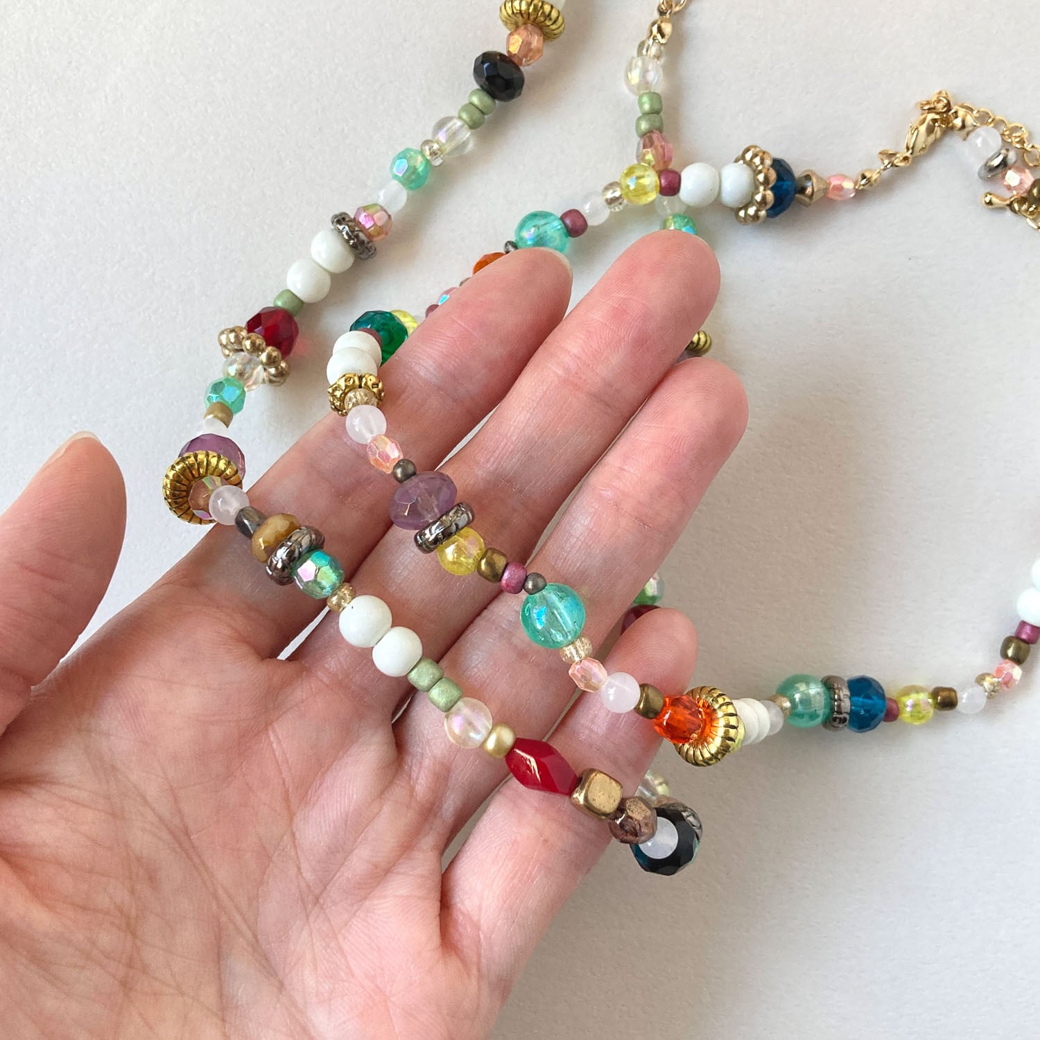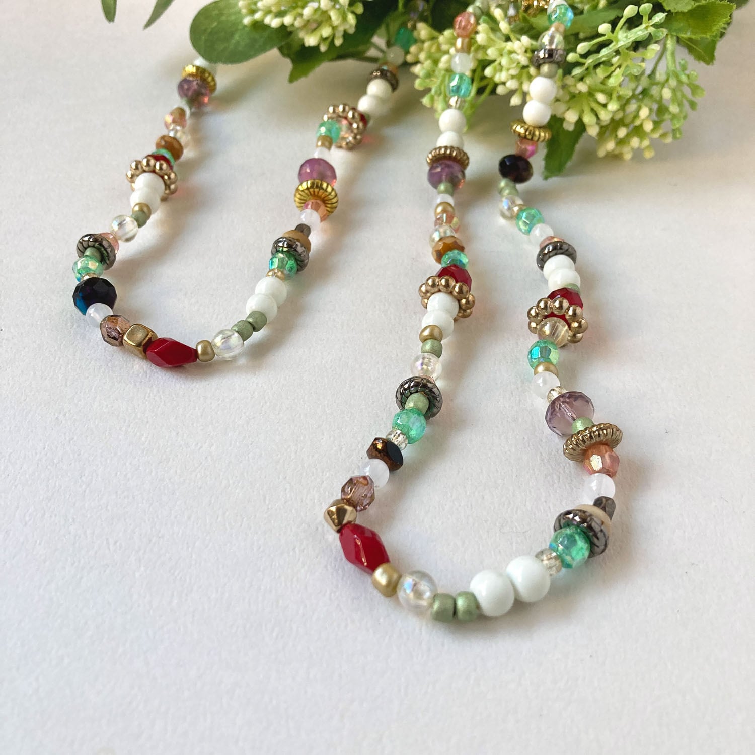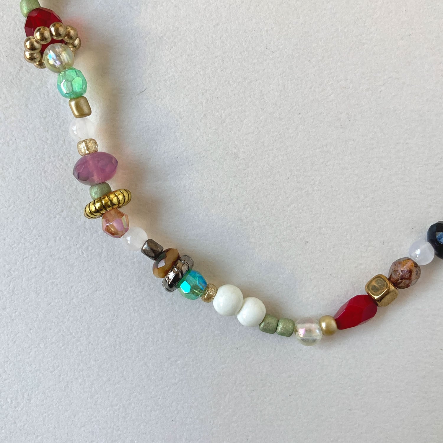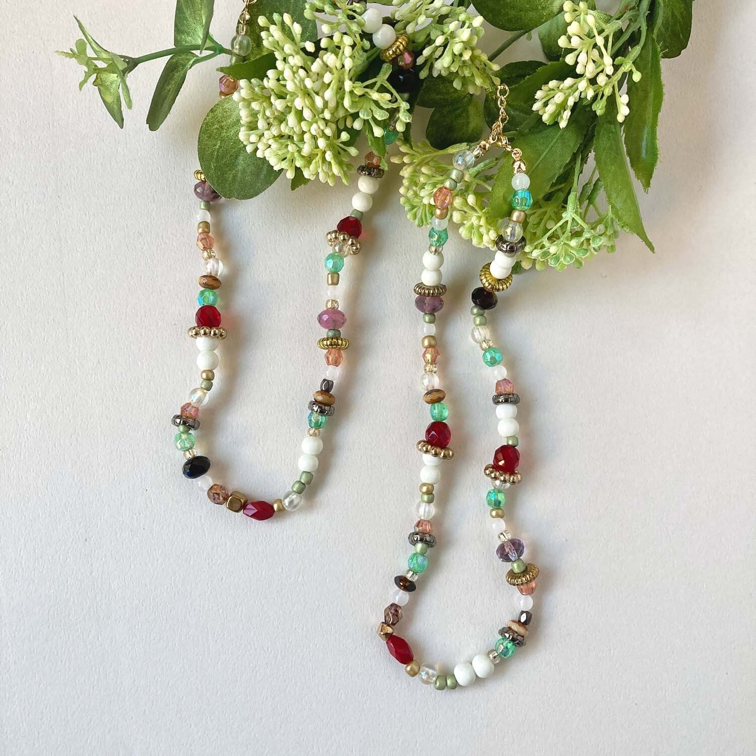 チェコガラスやプラビーズをミックスしたネックレス。