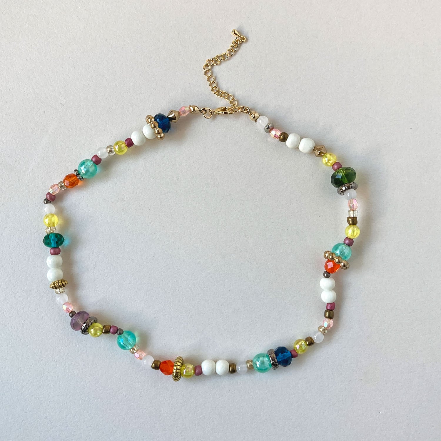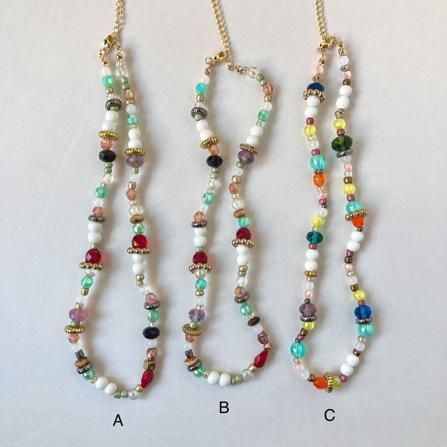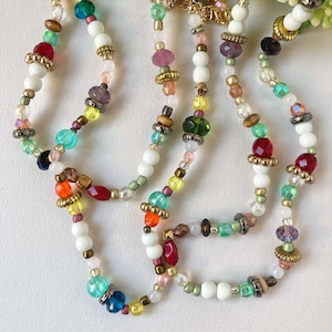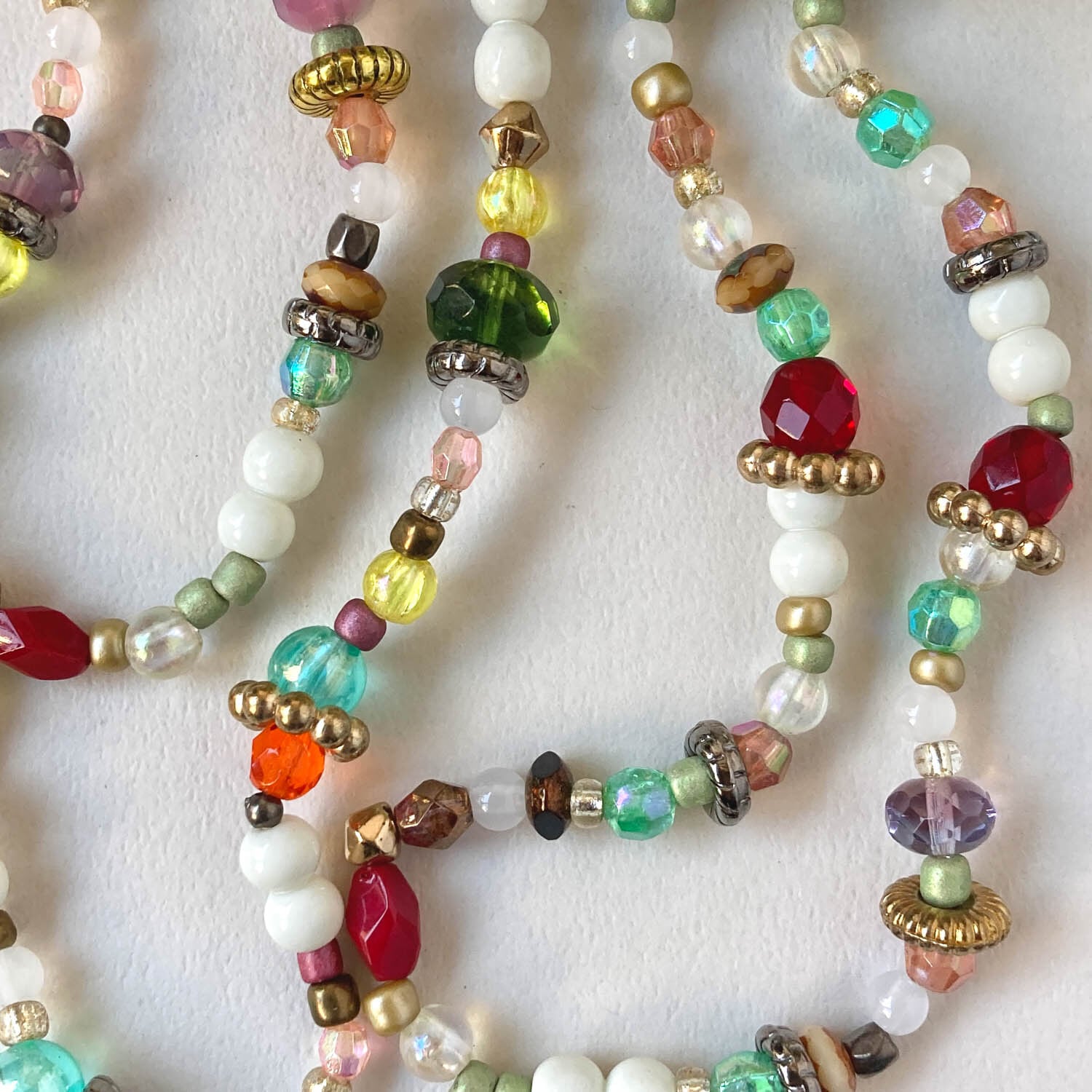 チェコガラスやプラビーズをミックスしたネックレス。