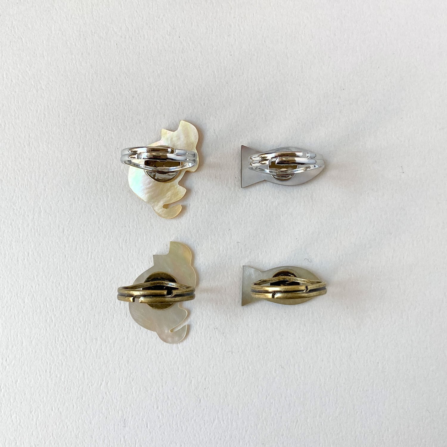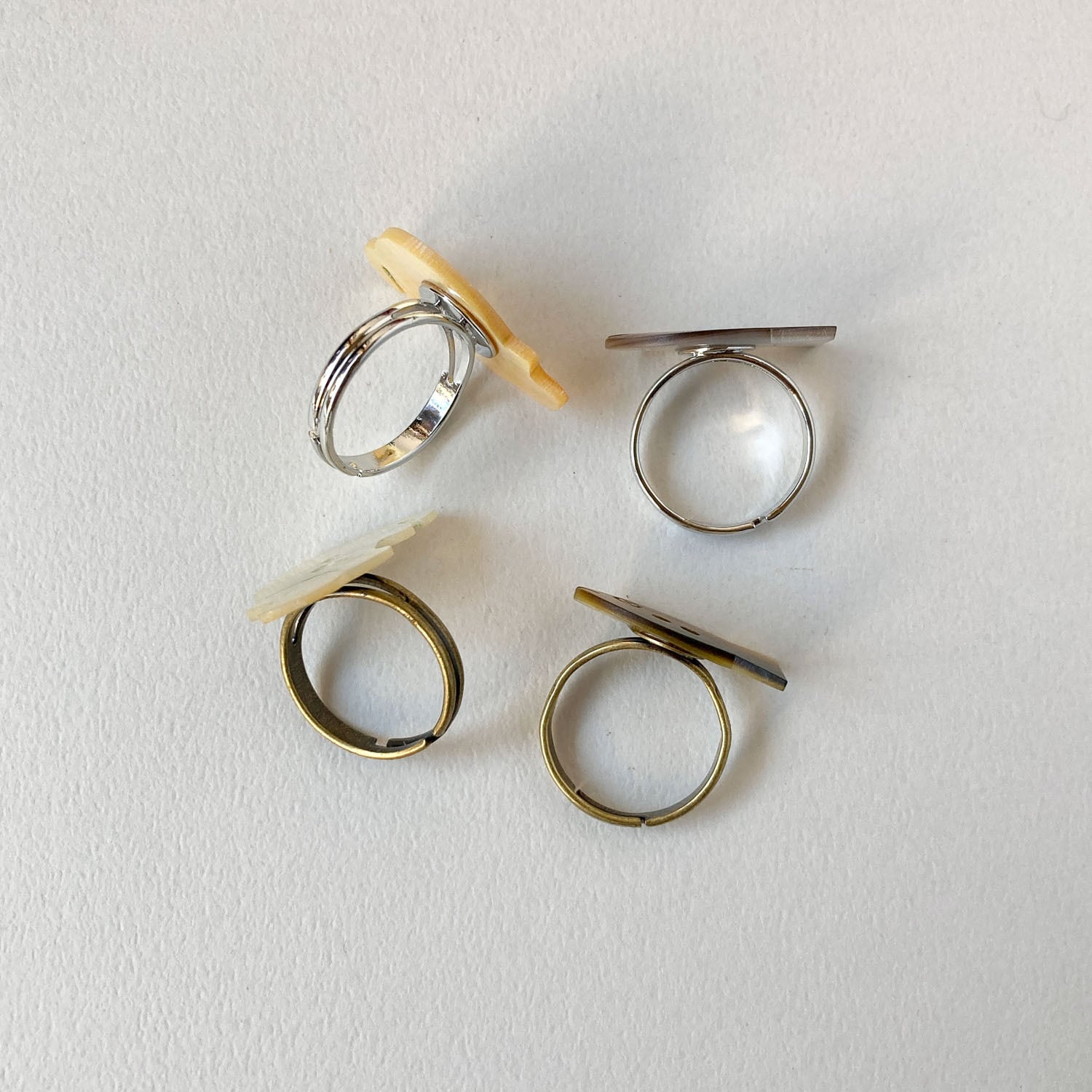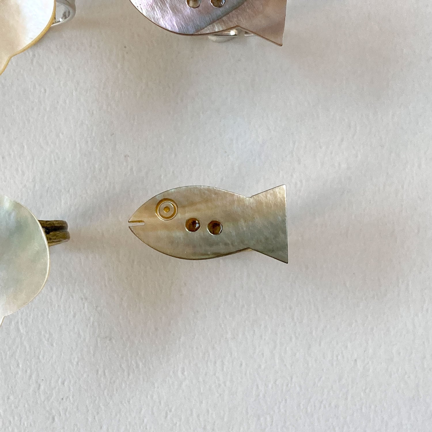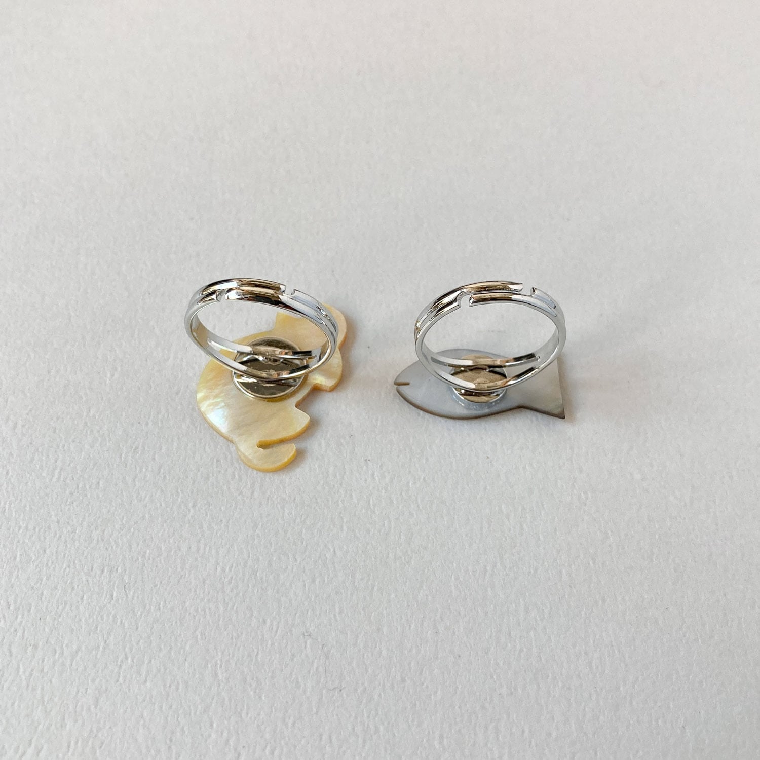 可愛らしい猫と魚のシェルボタンをリングに仕立てました。