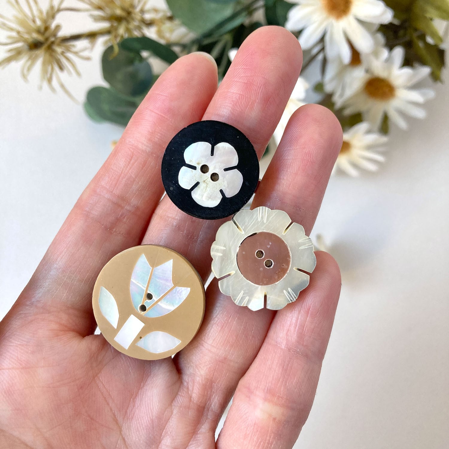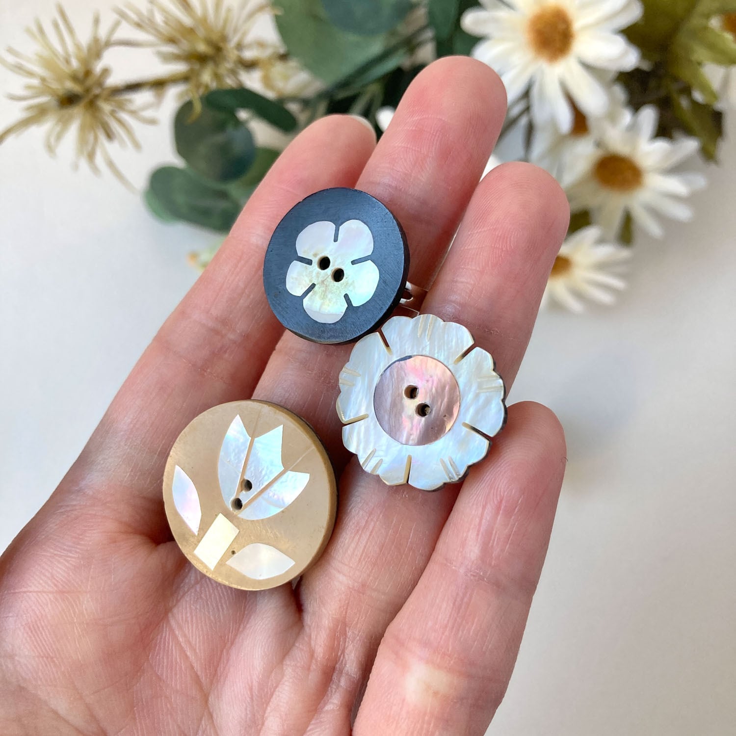 シェルボタンのリング 花