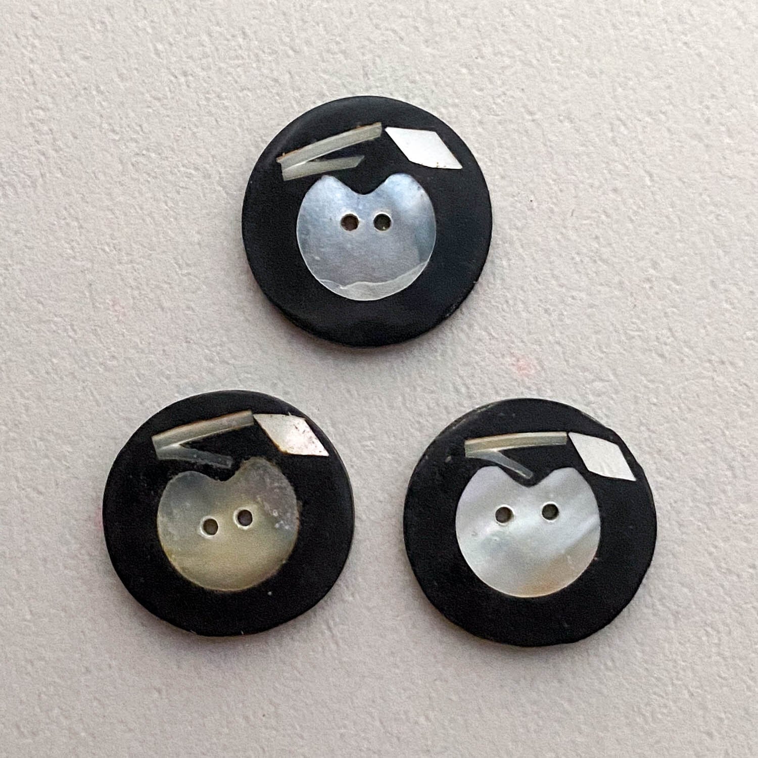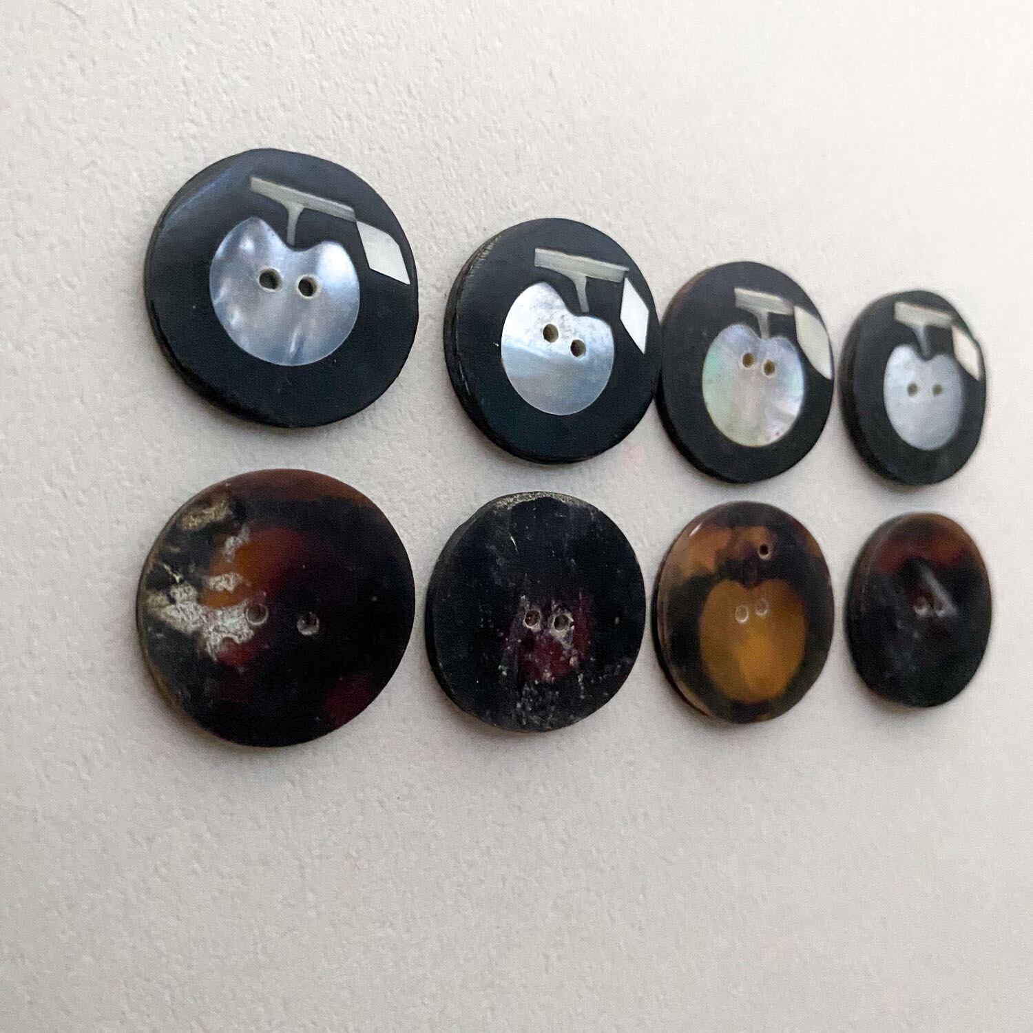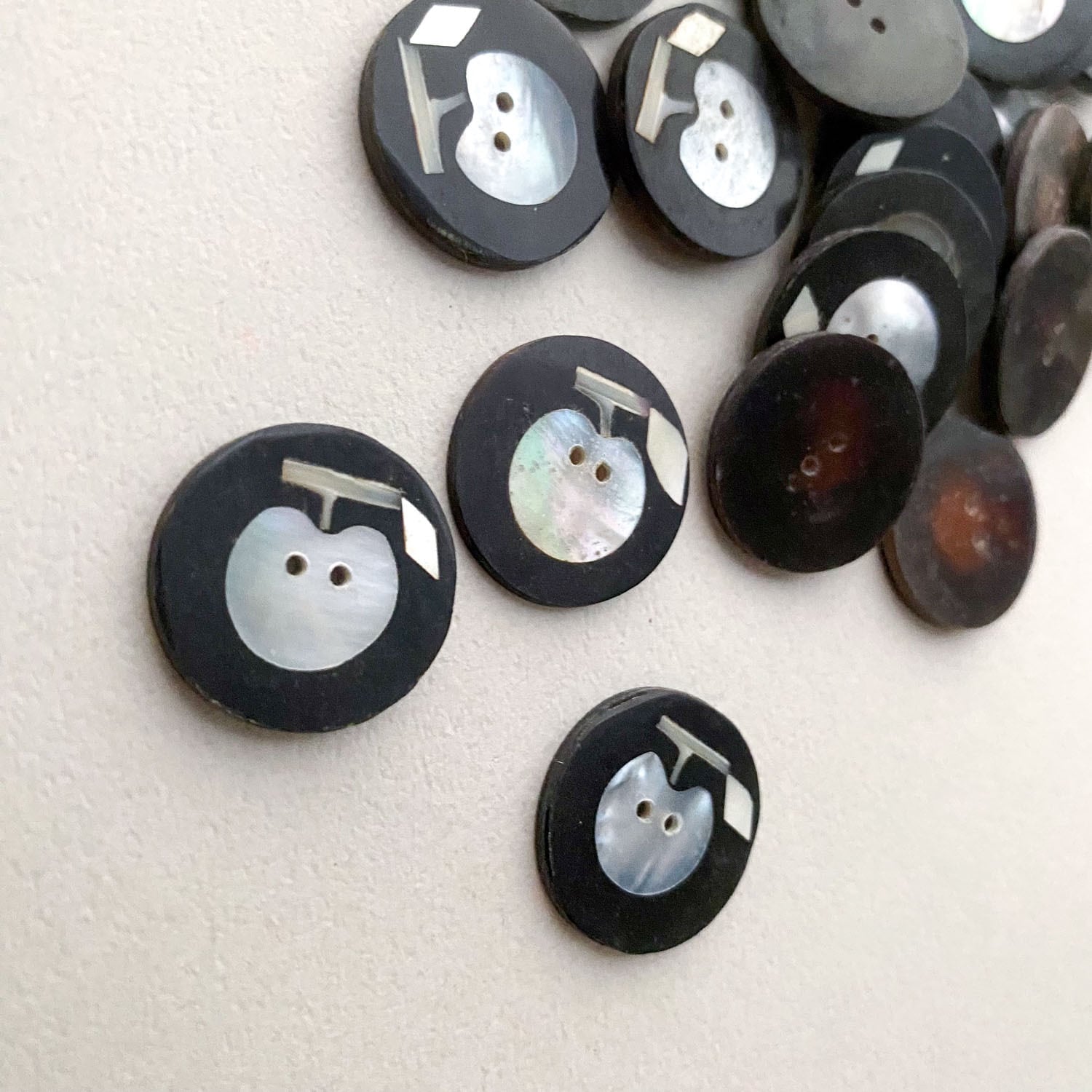 オーロラの偏光カラーが美しいシェルのボタン。