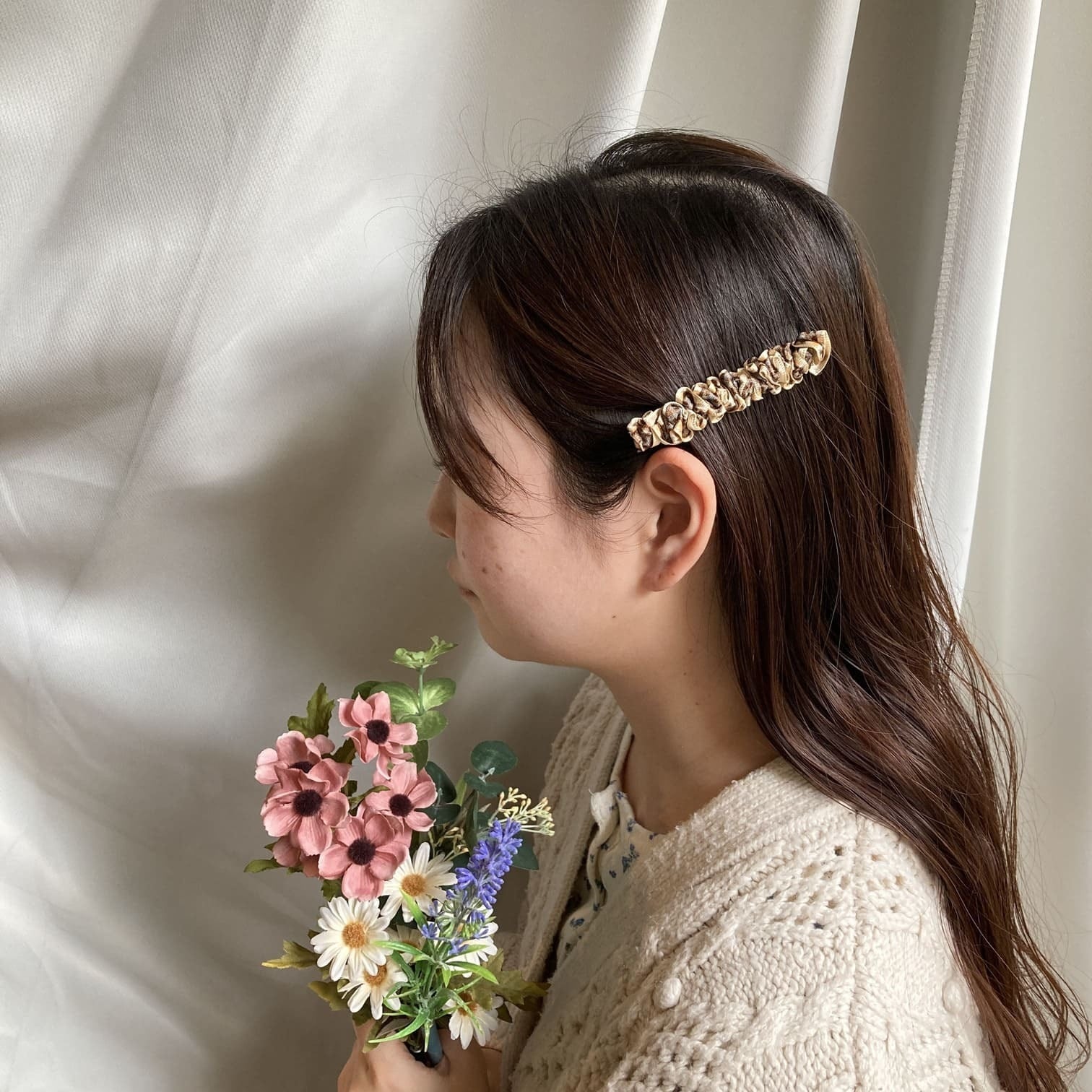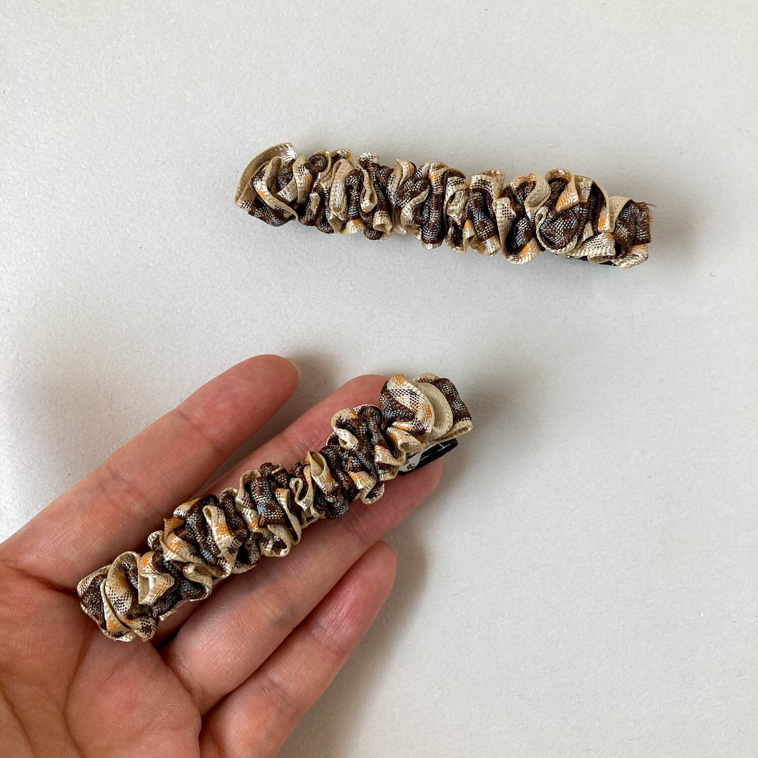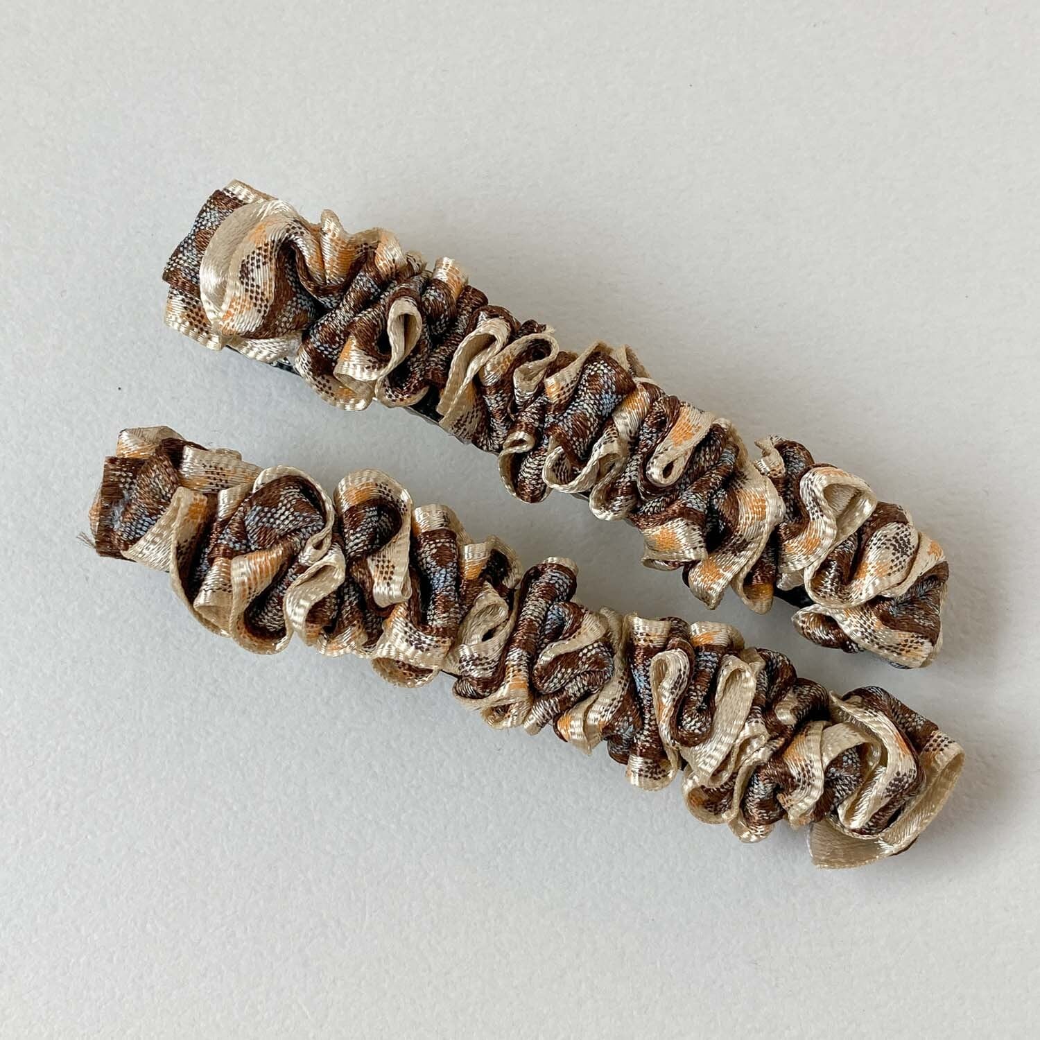 チェック柄リボンのギャザーがぎゅぎゅっと、かわいいヘアクリップです。