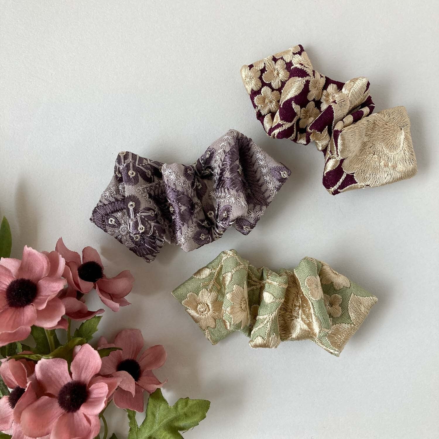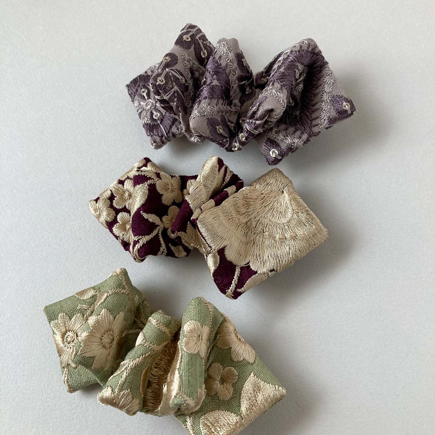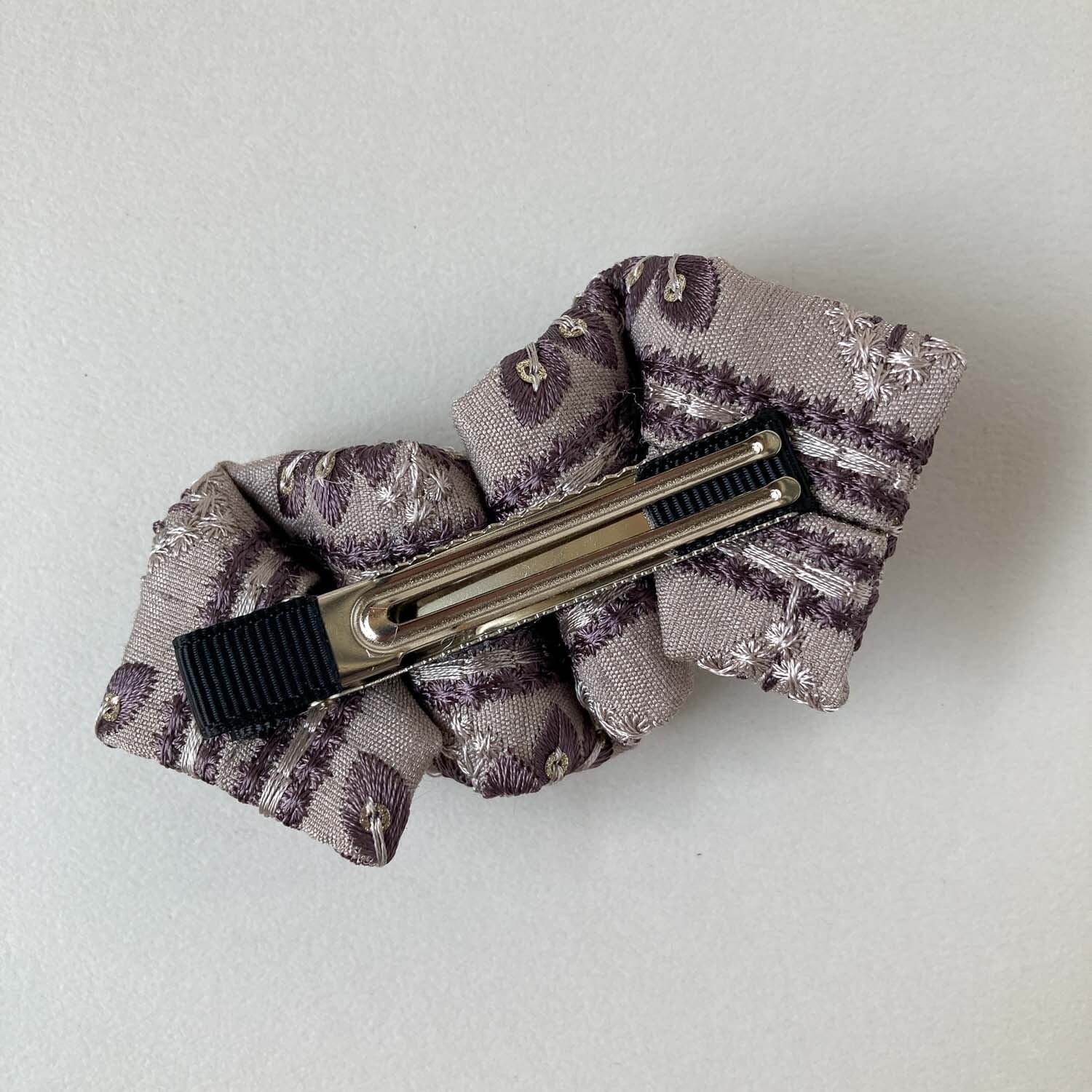 ツートーン花刺繍リボンのくしゅくしゅヘアクリップ