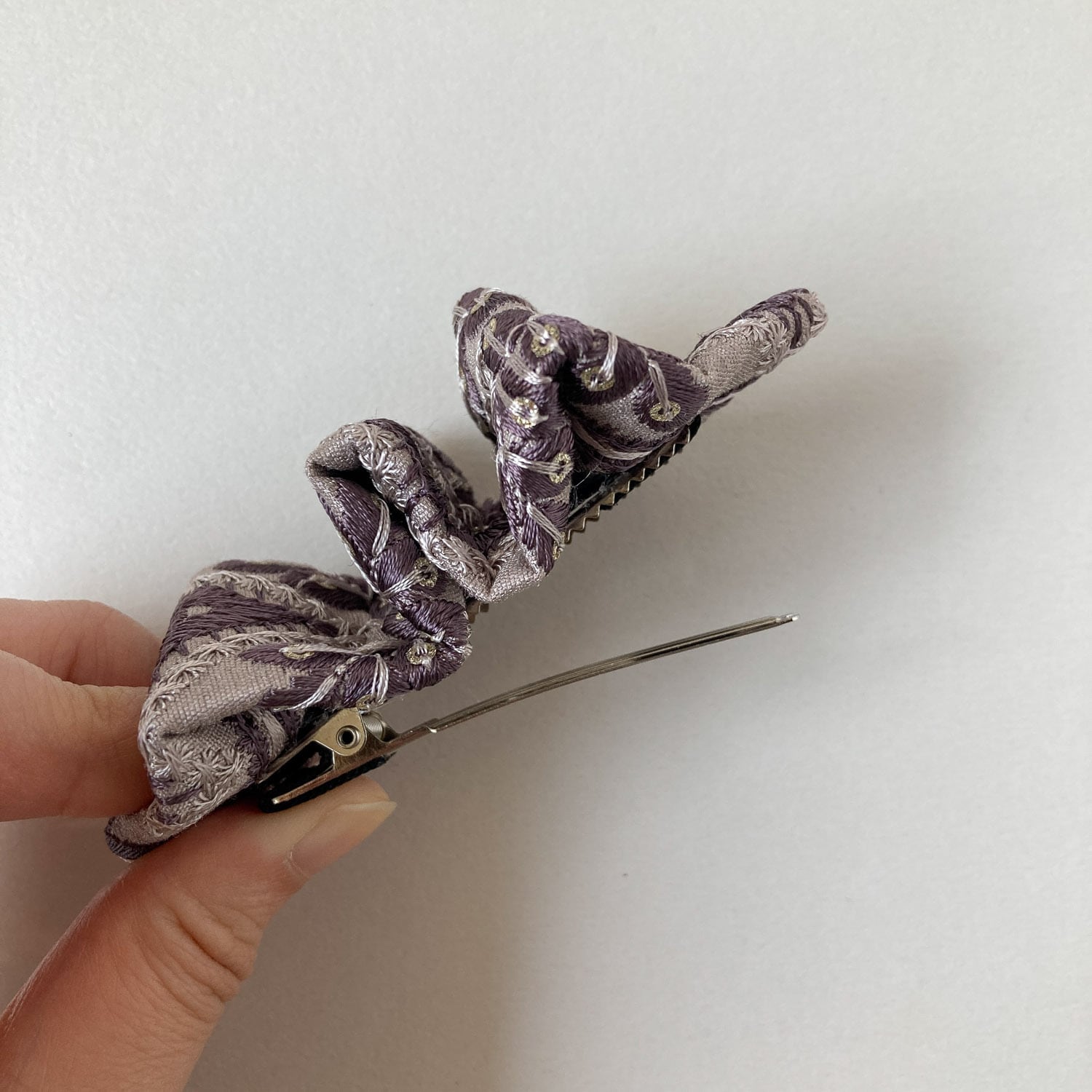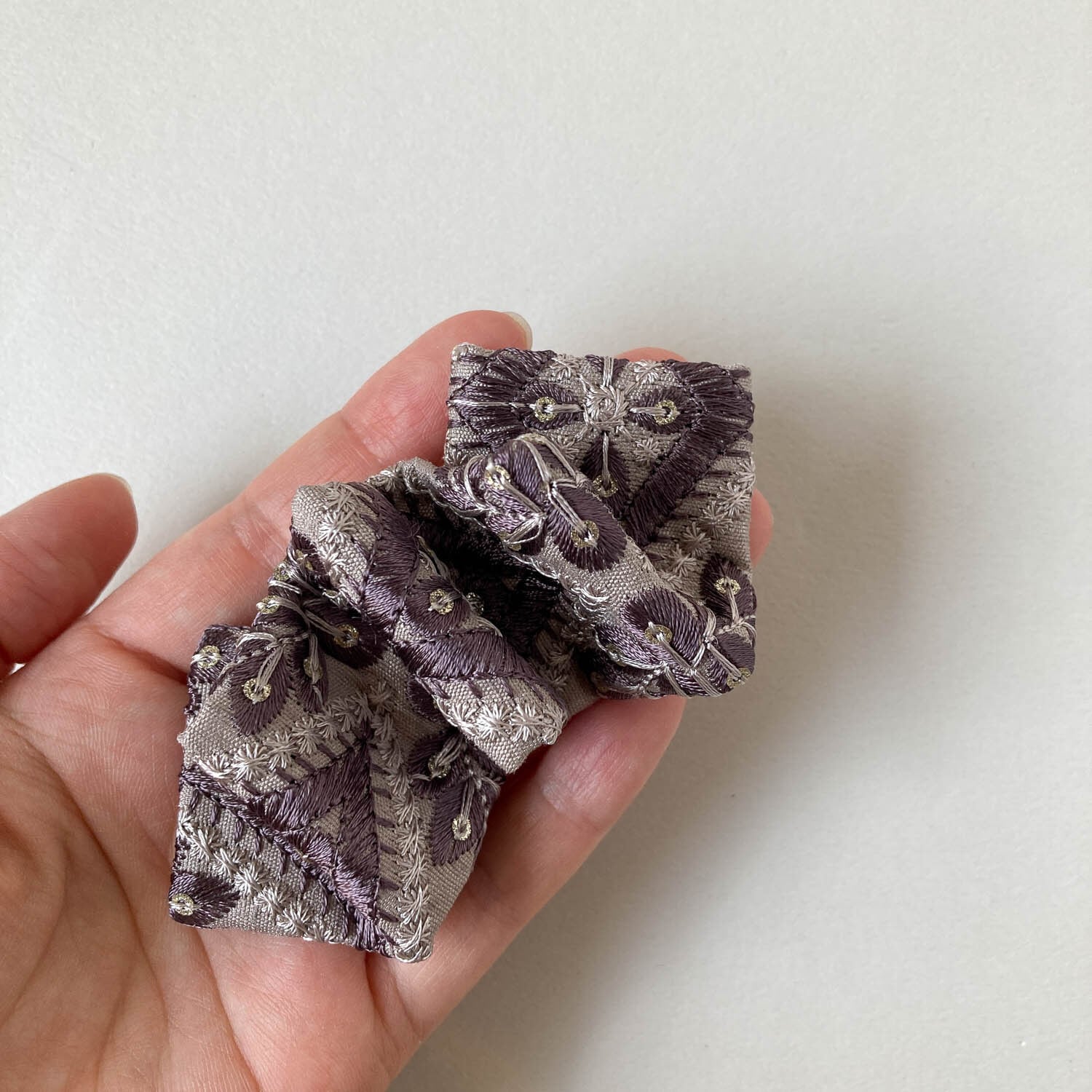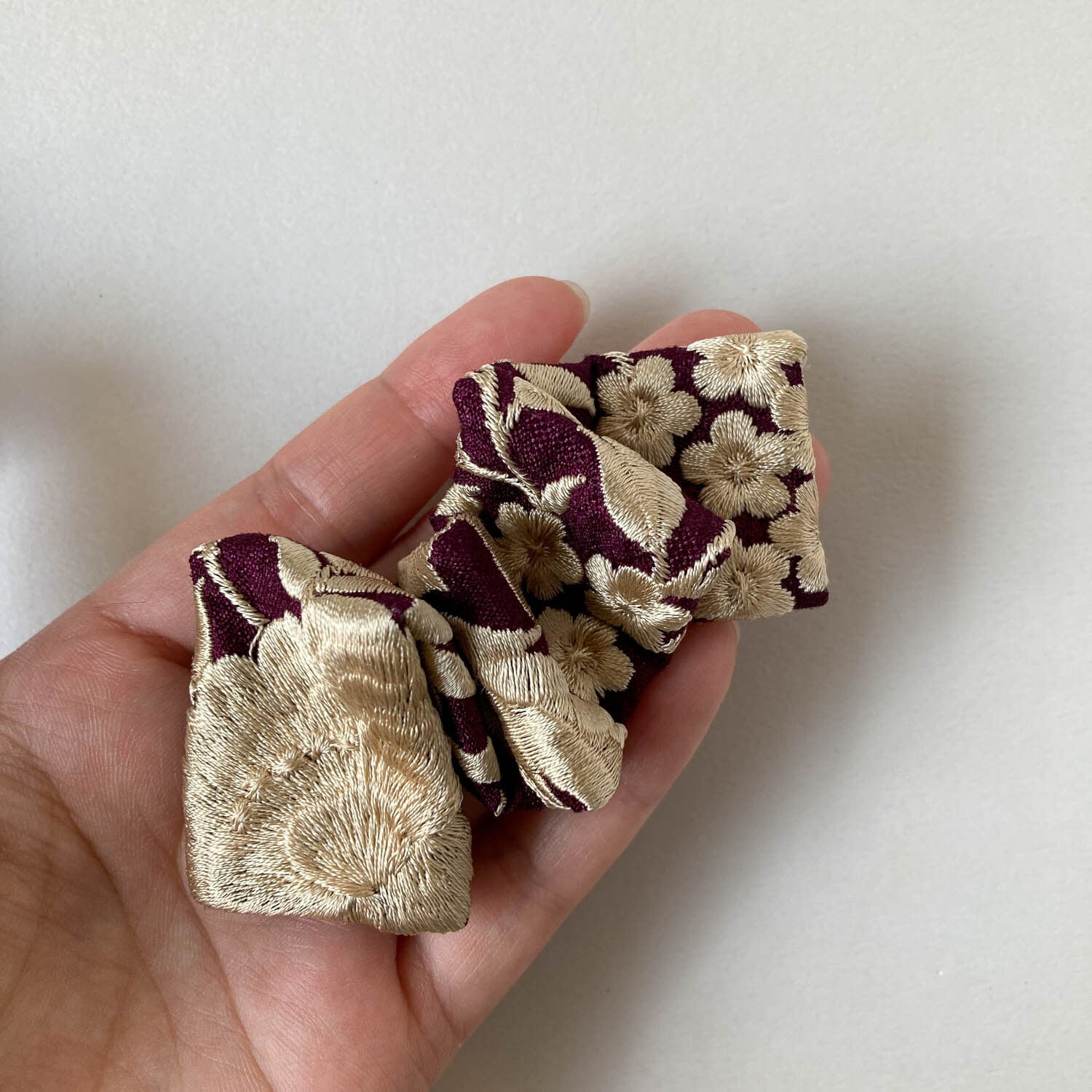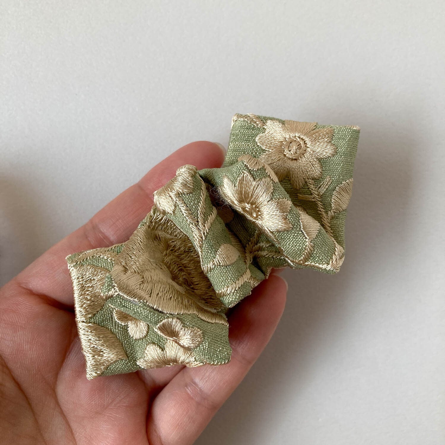 ツートーン花刺繍リボンのくしゅくしゅヘアクリップ