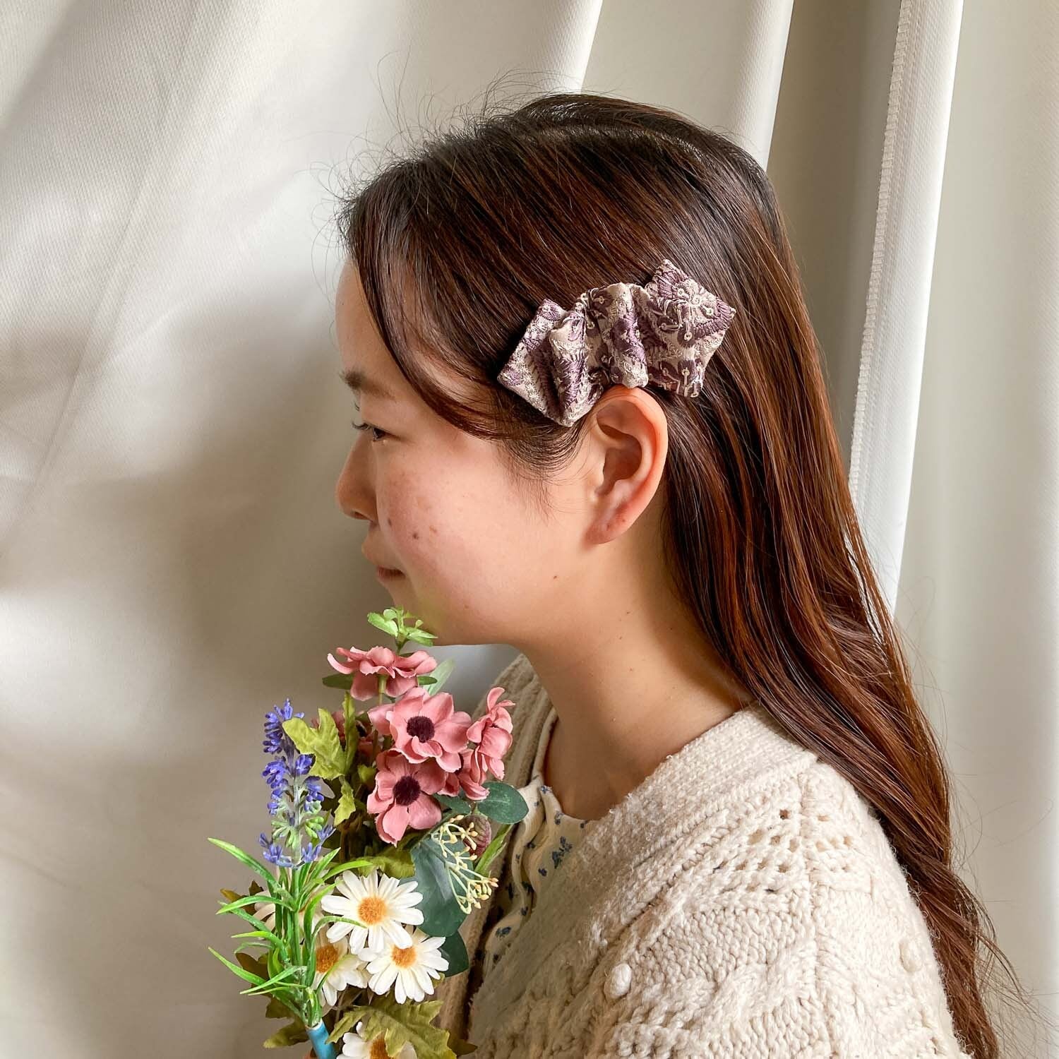 シックなお花模様で身につけやすいカラーのヘアクリップ。