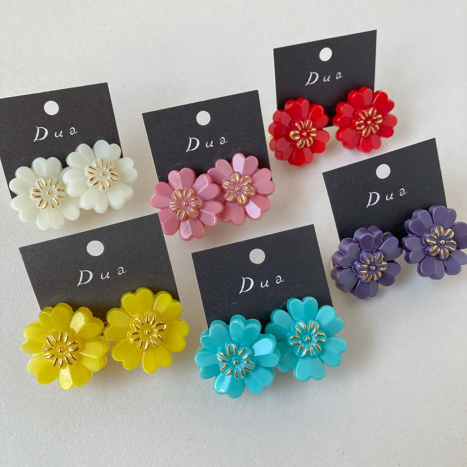 ビビットカラーのお花チェコガラス〈ピアス/イヤリング〉
