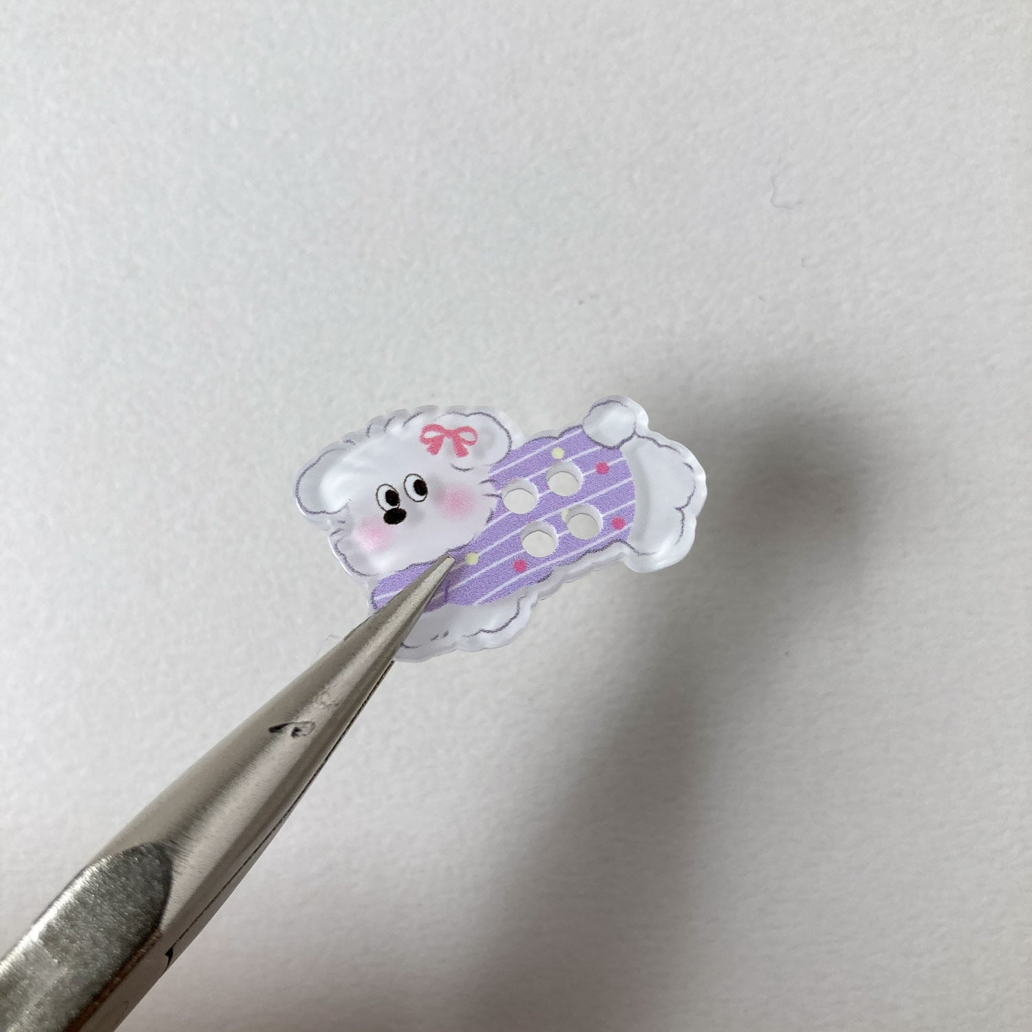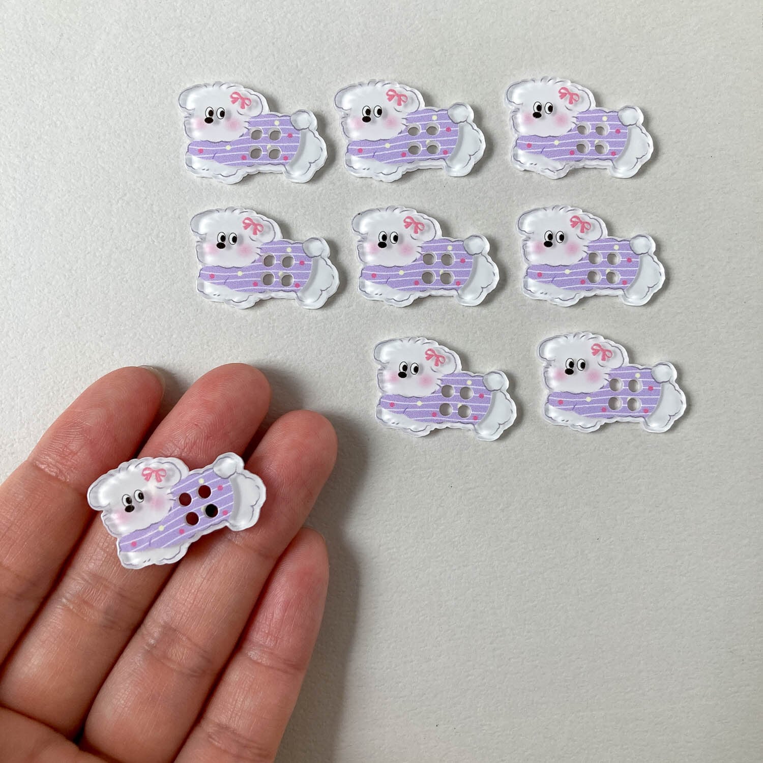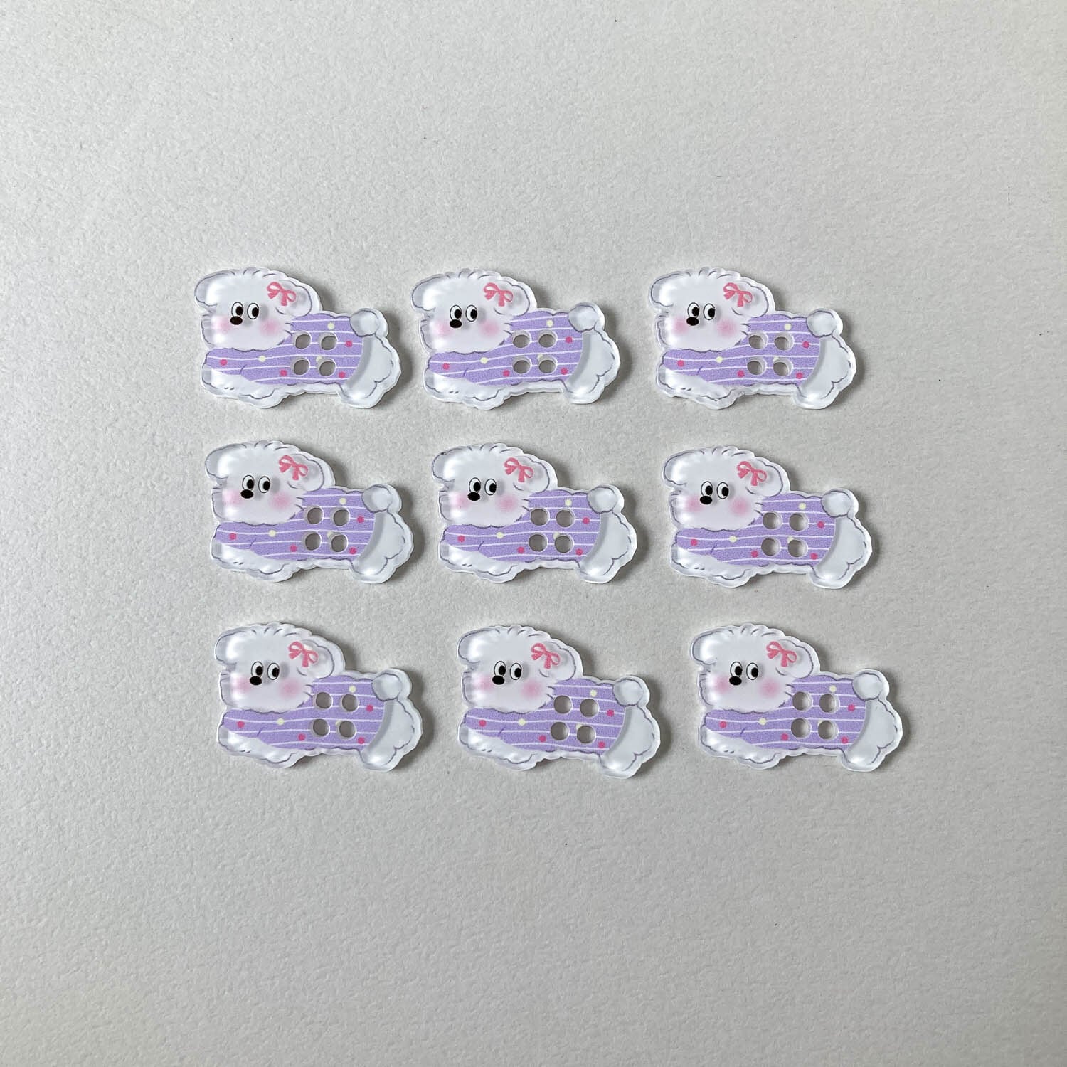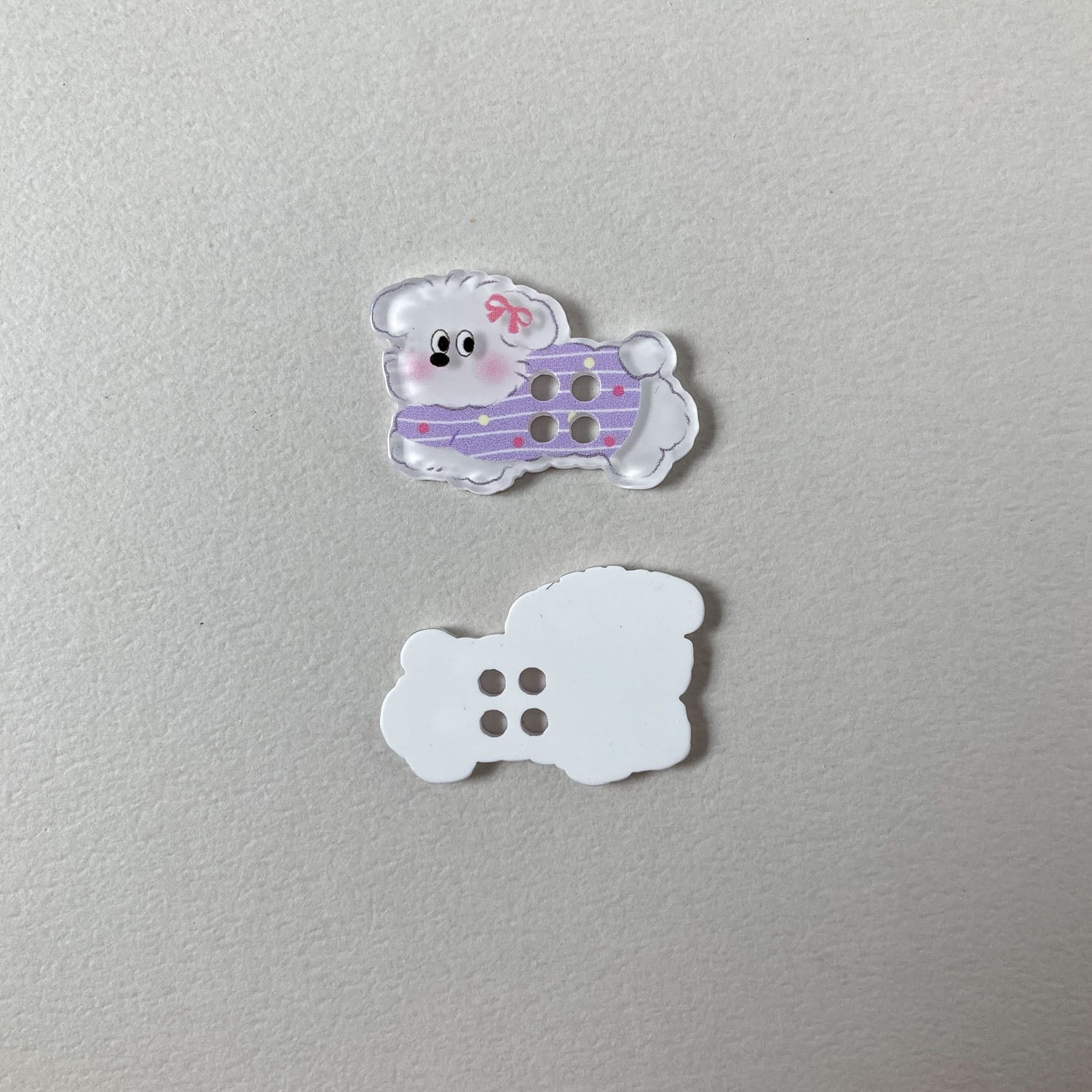 お洋服を着たイヌのボタン。