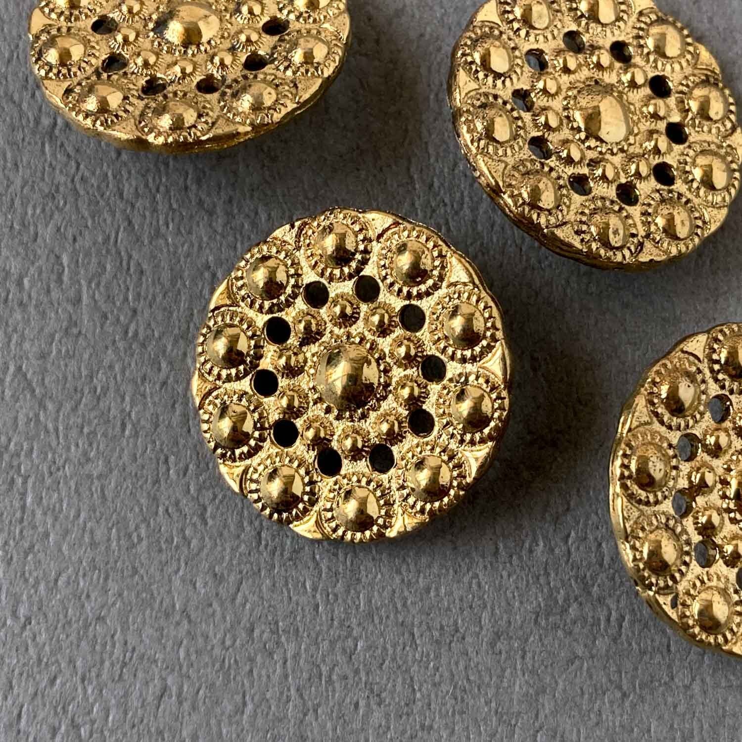 幾何学的な印象のつぶつぶ模様のメタルボタン。