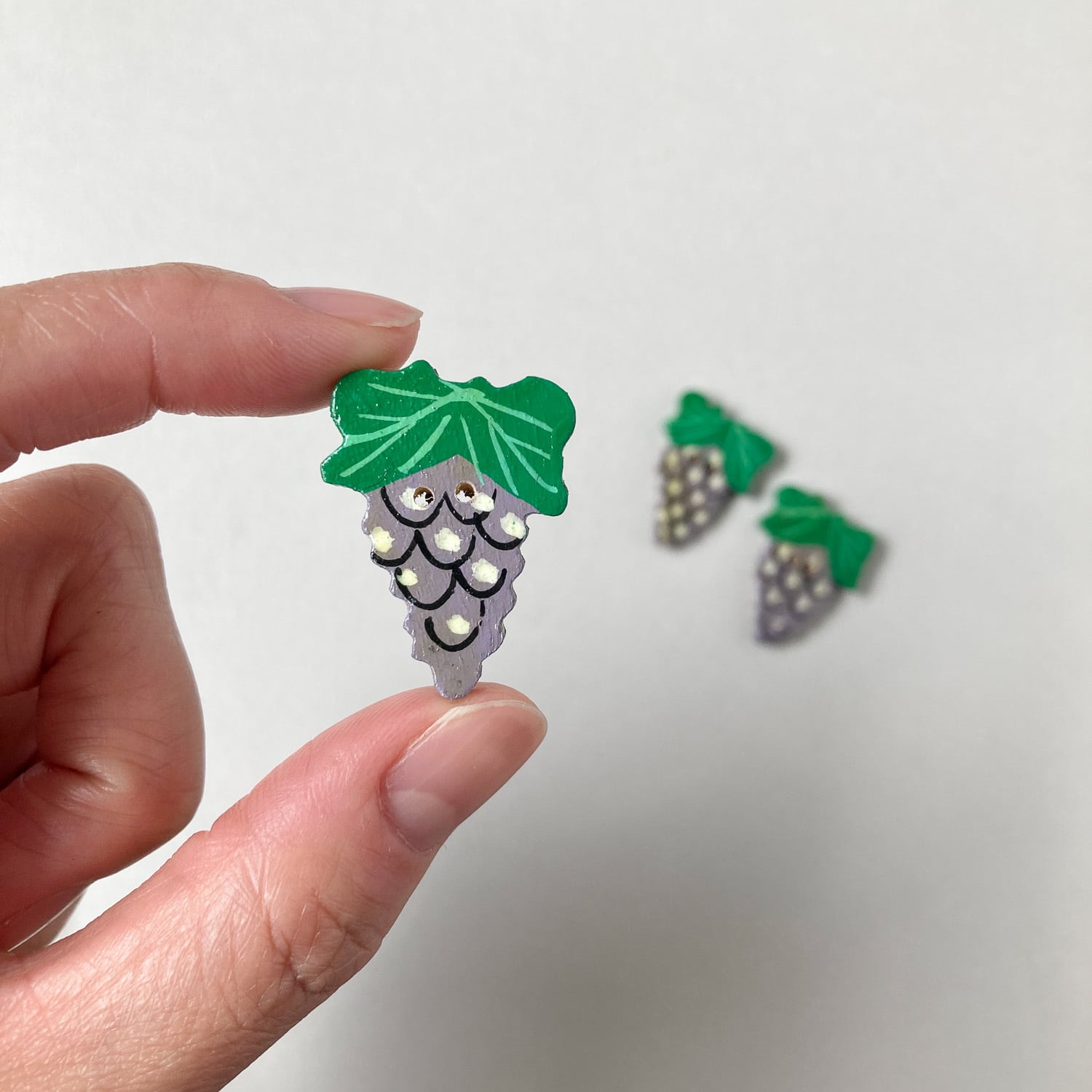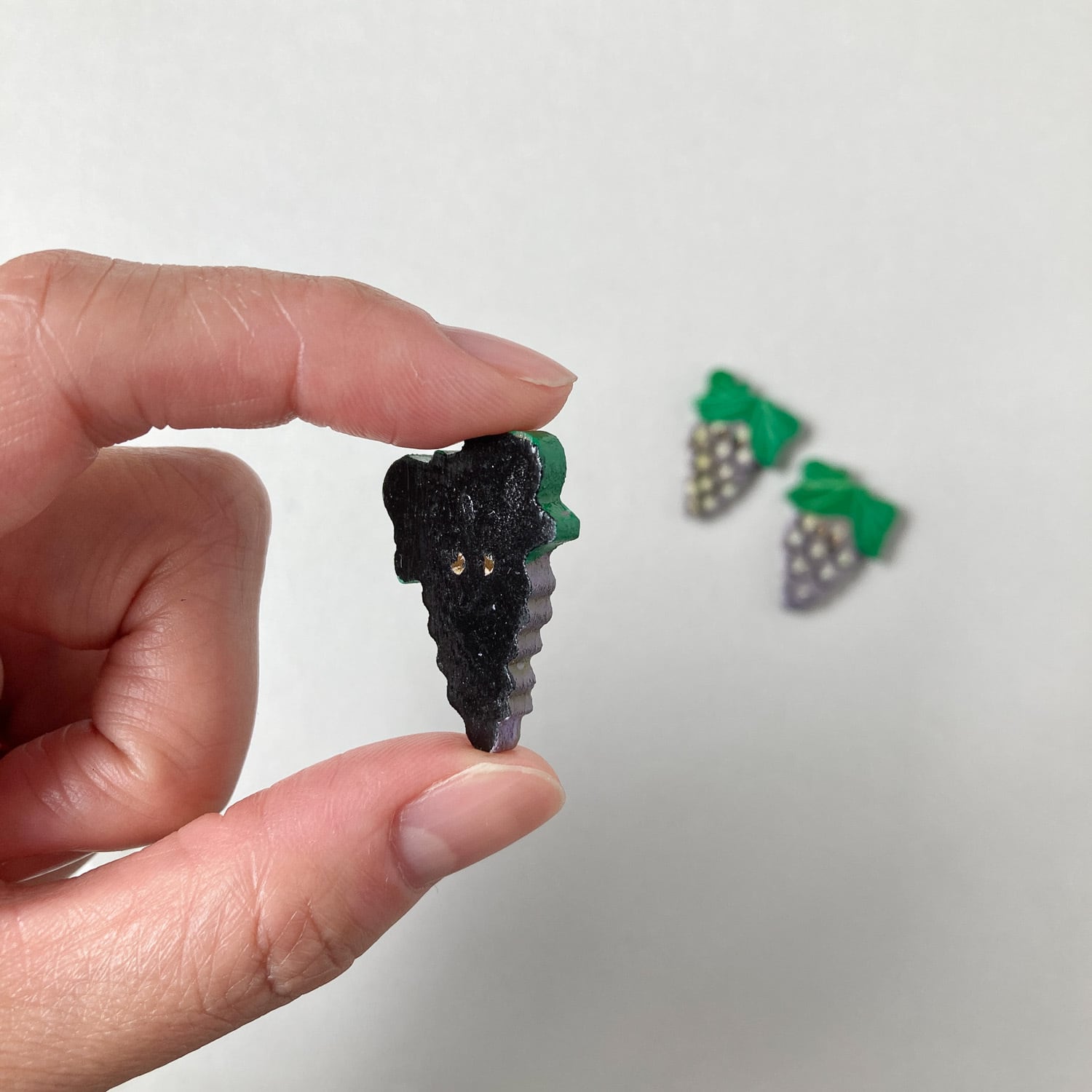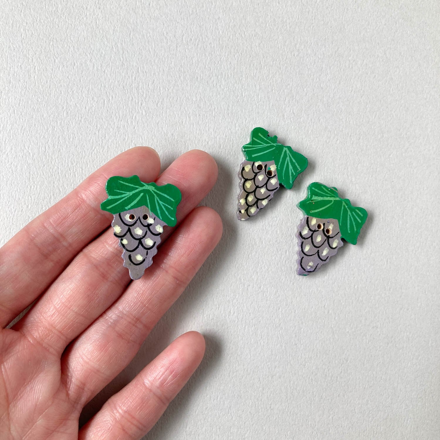 ハンドペイントの可愛らしいぶどうモチーフボタン。