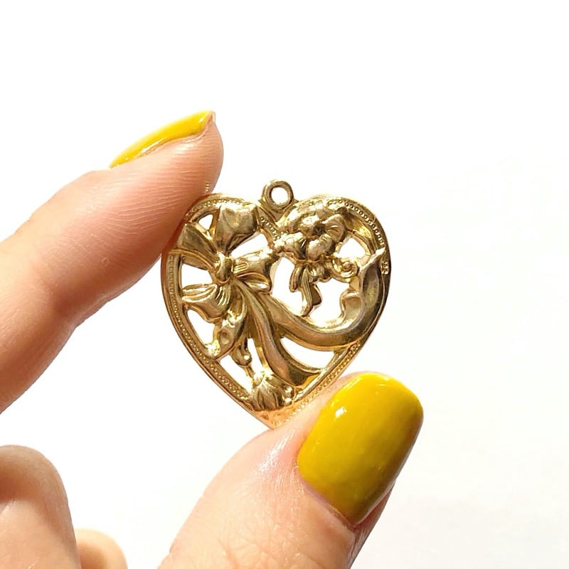 〈最終入荷〉USA真鍮 リボンハートチャーム