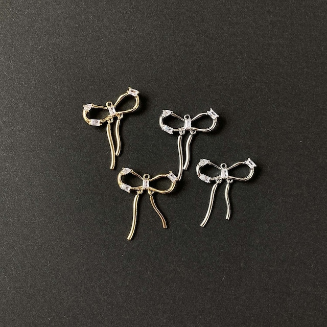 揺れるリボンのジルコニアチャーム(16K/プラチナメッキ)¥1,100