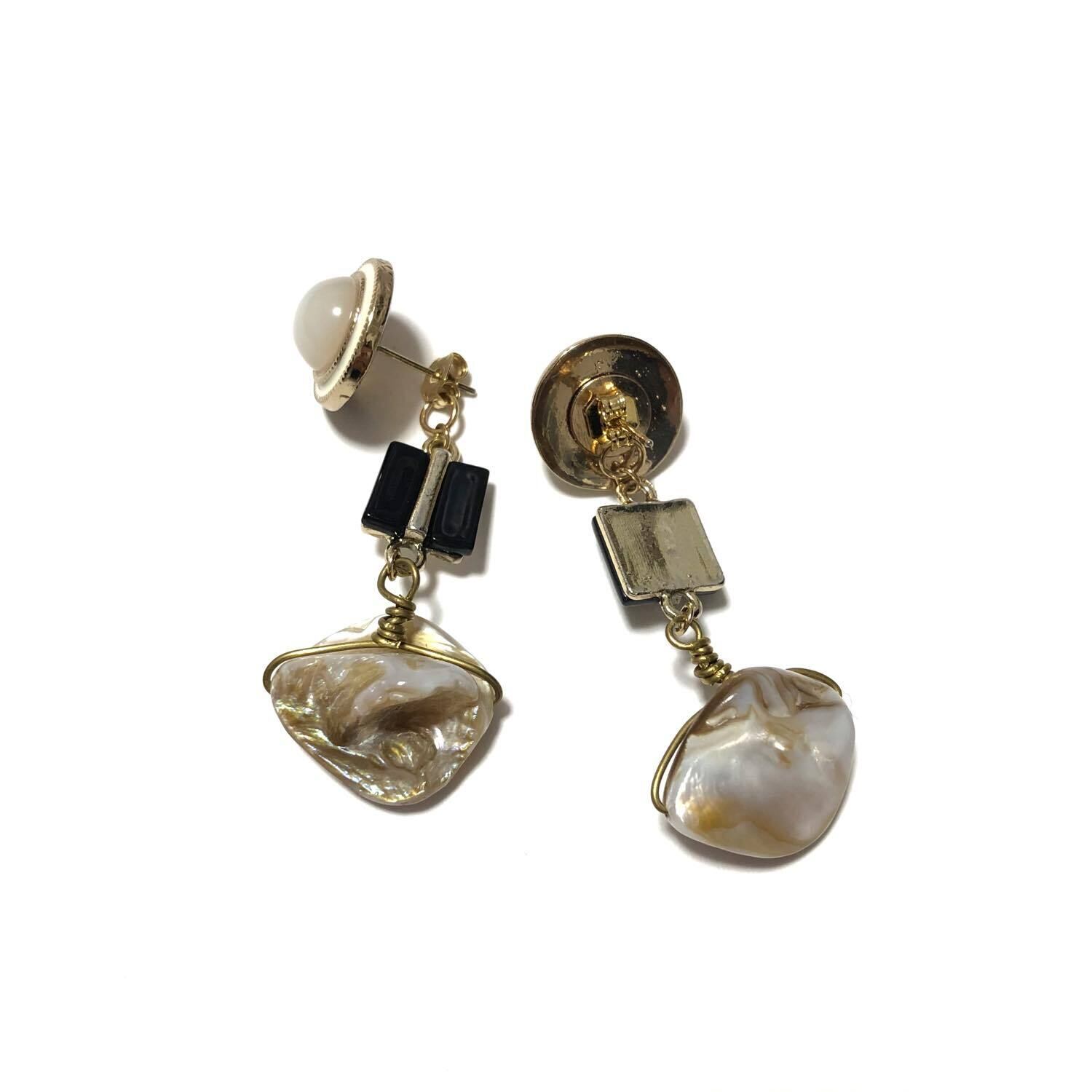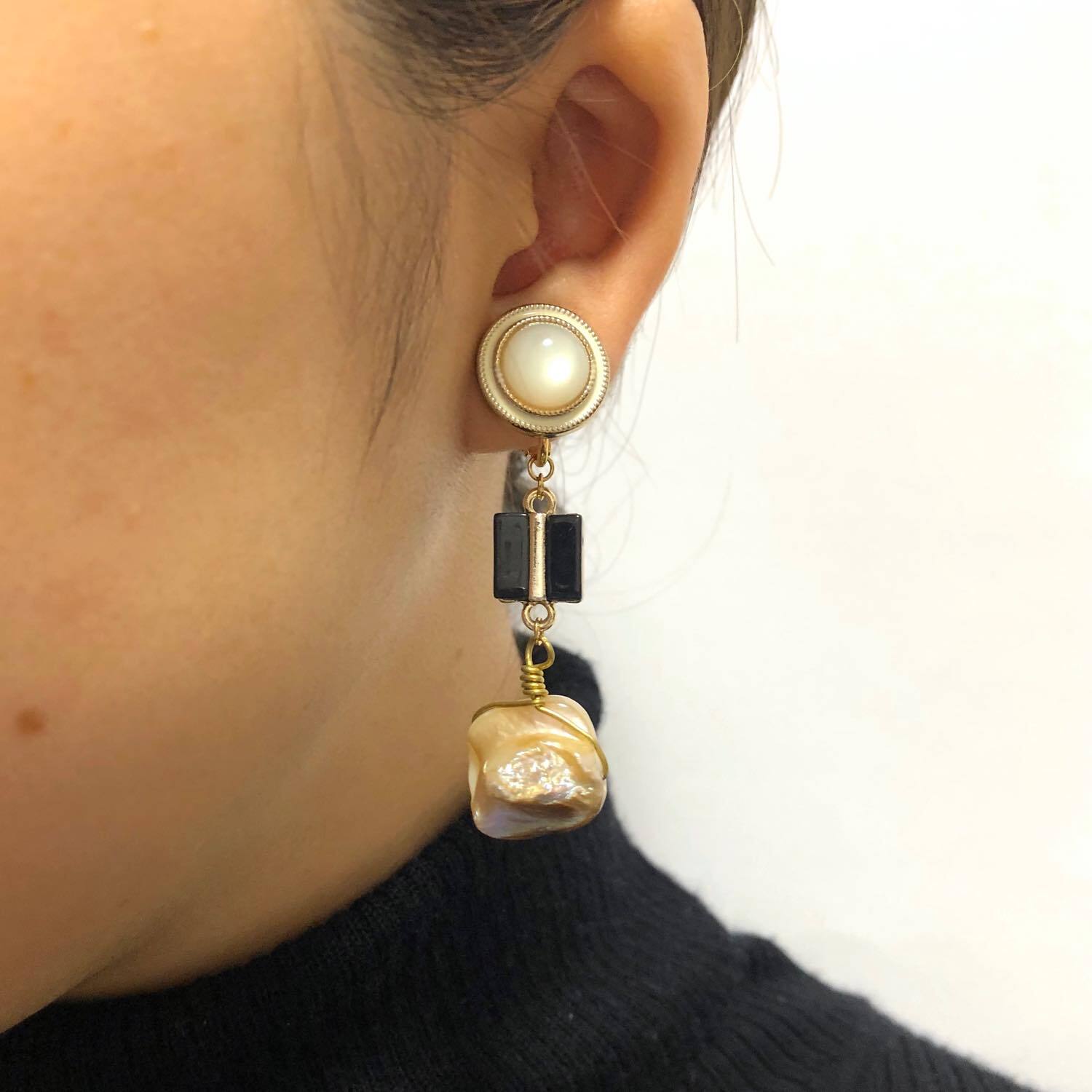 レトロなボタンとシェルチャームの〈ピアス/イヤリング〉