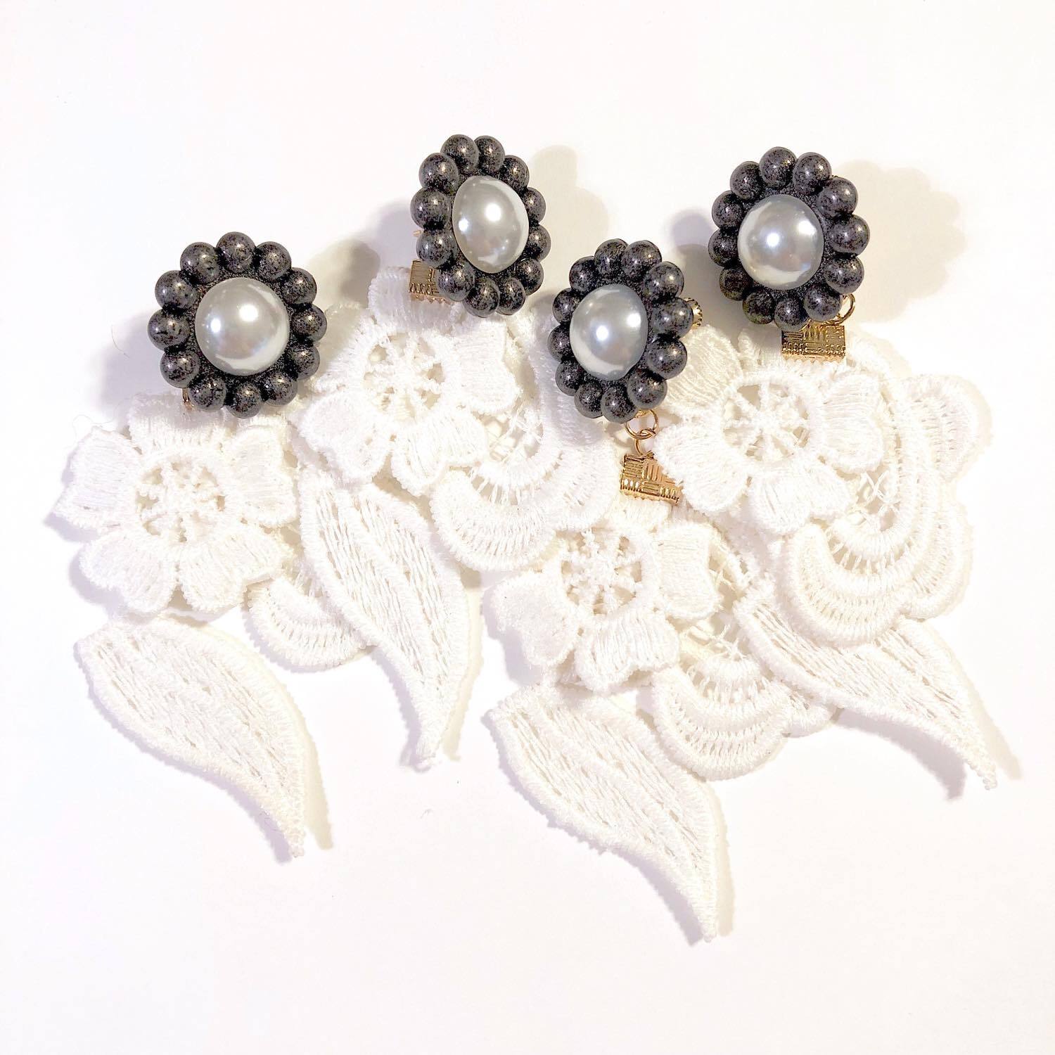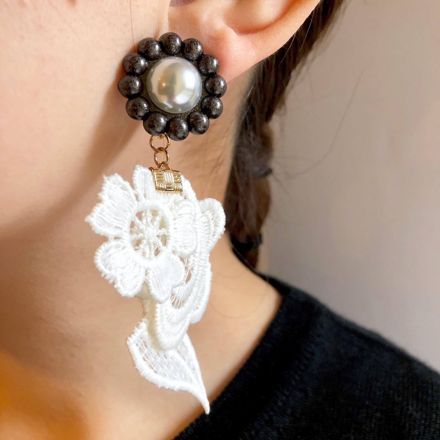 パールトップとコットンレースの〈ピアス/イヤリング〉