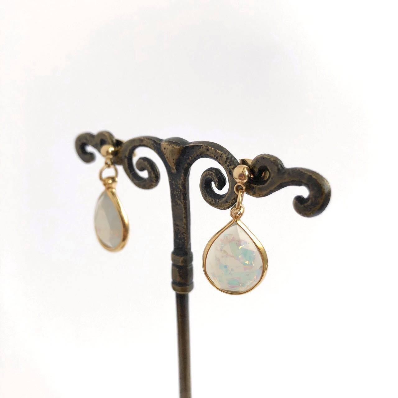 白いホロ入りドロップチャームの〈ピアス/イヤリング〉