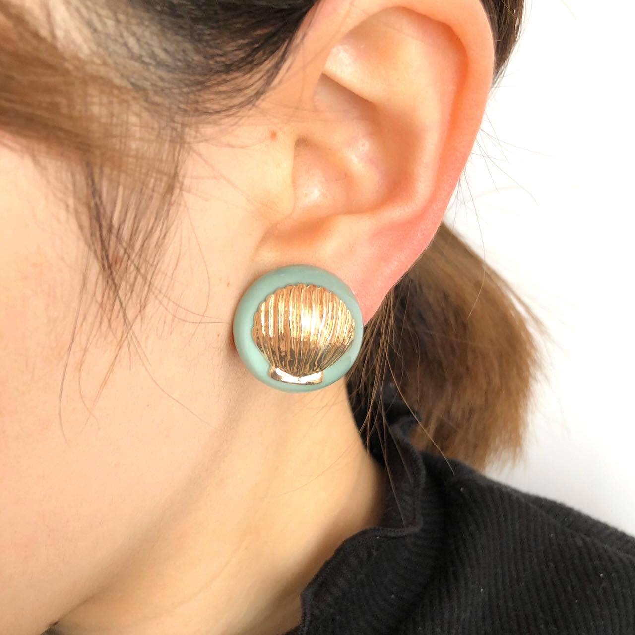 貝殻モチーフ入りカボションの〈ピアス/イヤリング〉