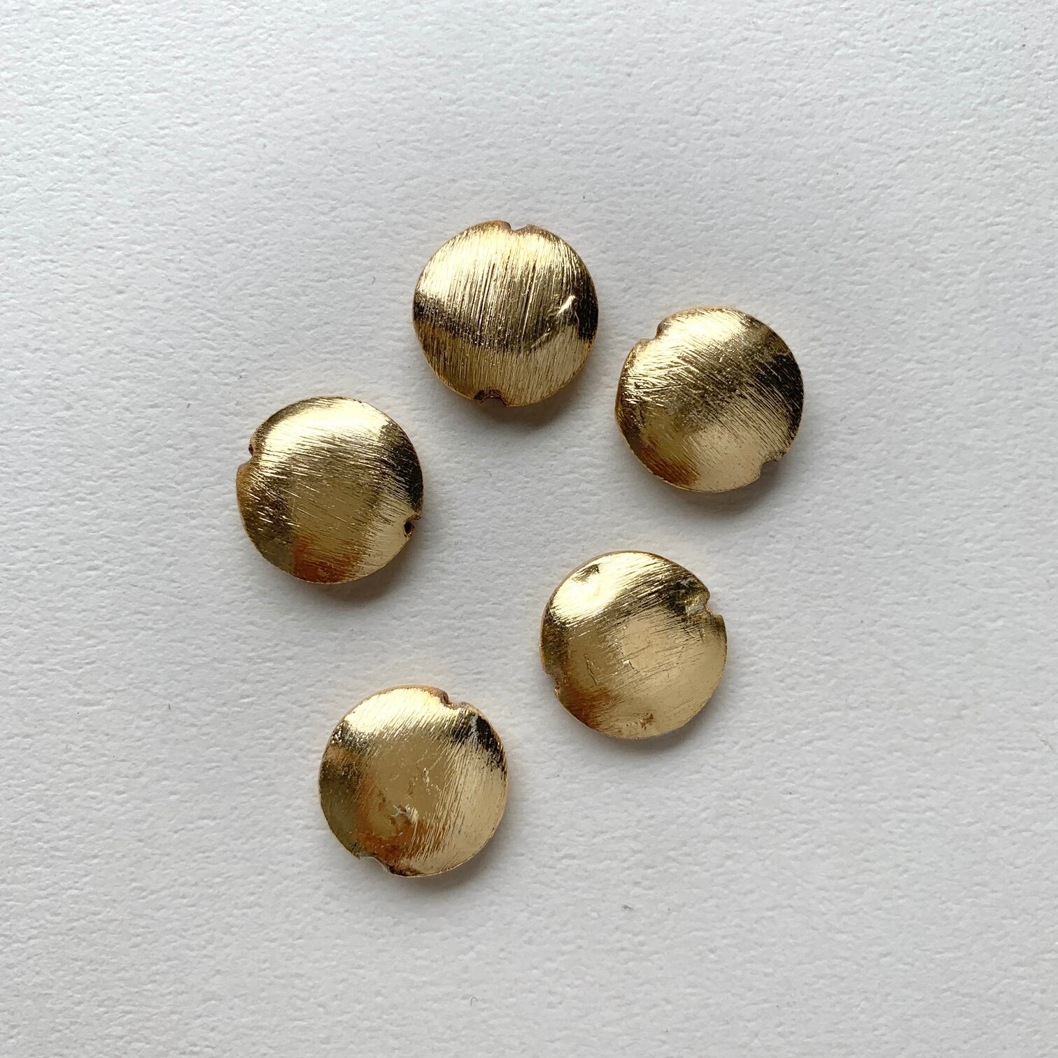 筋模様が入ったシンプルなトルコ製真鍮ビーズ。 やわらかな印象のゴールドカラーで 他のパーツとも合わせていただきやすいです。 ◾️販売単位:1個 ◾️輸入元:トルコ ■素材:メタル ◾️サイズ:約16mm 厚み:約4mm ■歪な形、凹み、色むら、変色がございます。 予めご了承ください。 ◾️商品コード:BE2003003