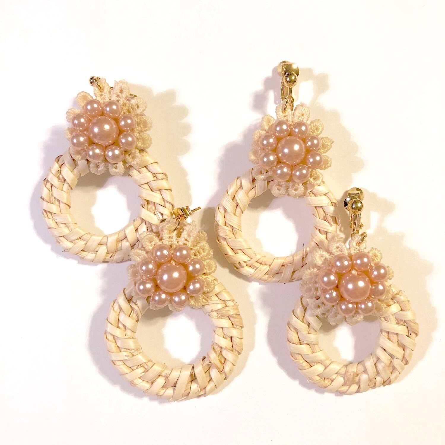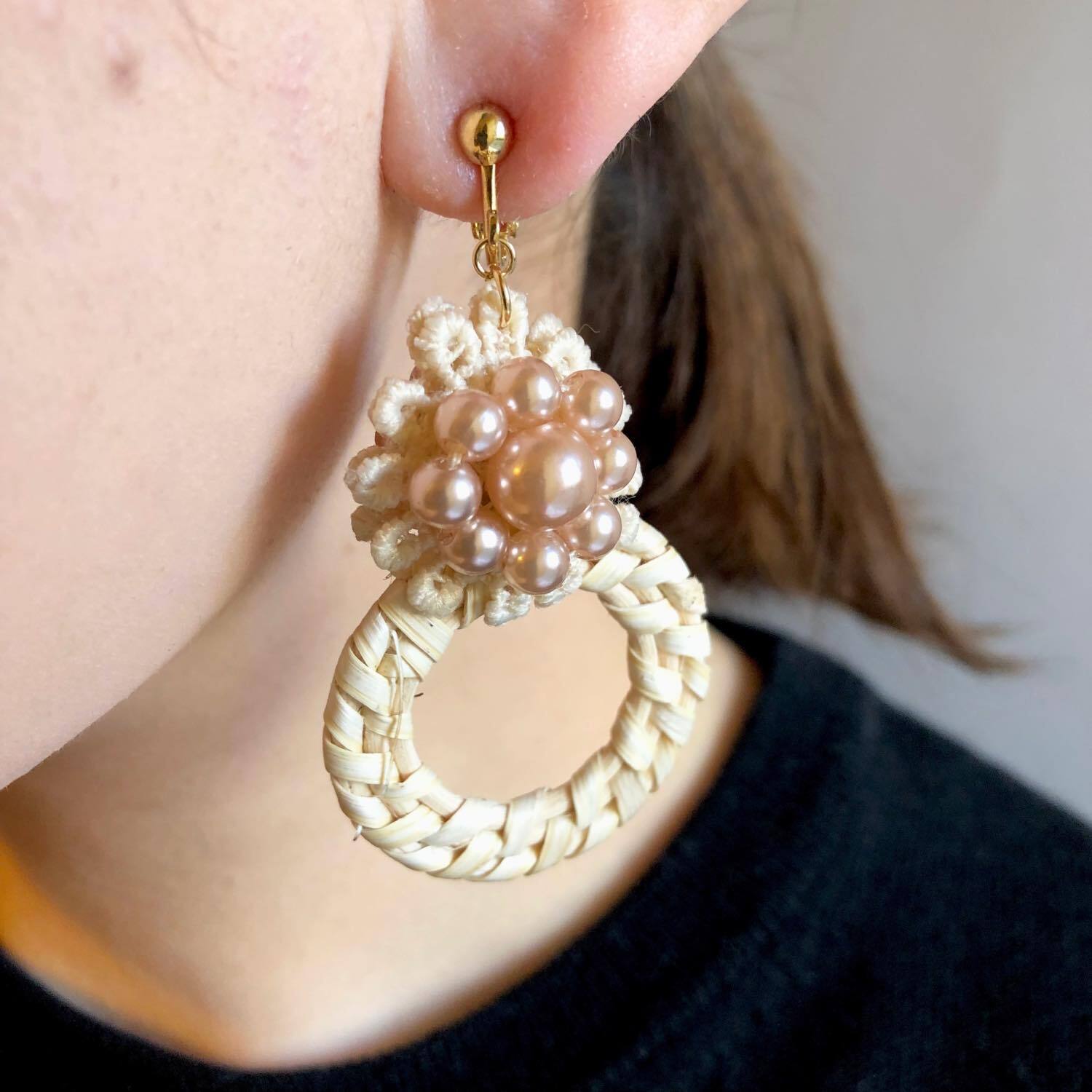 お花モチーフとラタン風フープの〈ピアス/イヤリング〉