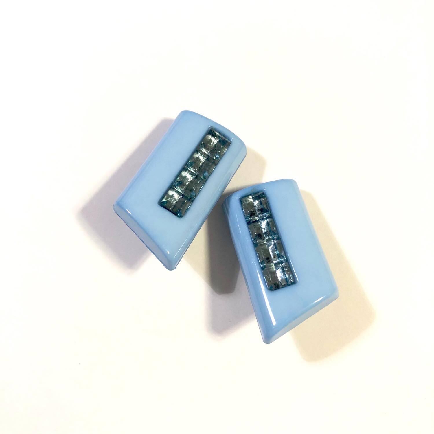キラキラスティックとカラーの長方形デザイン◎ 1980年代、西ドイツ時代の ヴィンテージイヤリングです。 ■サイズ:約28×15mm ■素材:ドイツ製アクリル ■金具:メッキ ■模様に個体差があります。 ■ヴィンテージ商品のため色むらや傷があることがあります。 ■取り外し可能なイヤリング用 シリコンゴムが付属しております。 ■ピアスへの金具交換は致しかねます。予め、ご了承くださいませ。 GAC2004076