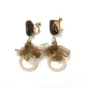 オーガンジー素材のタッセルやパールフープがガーリーな耳飾り。