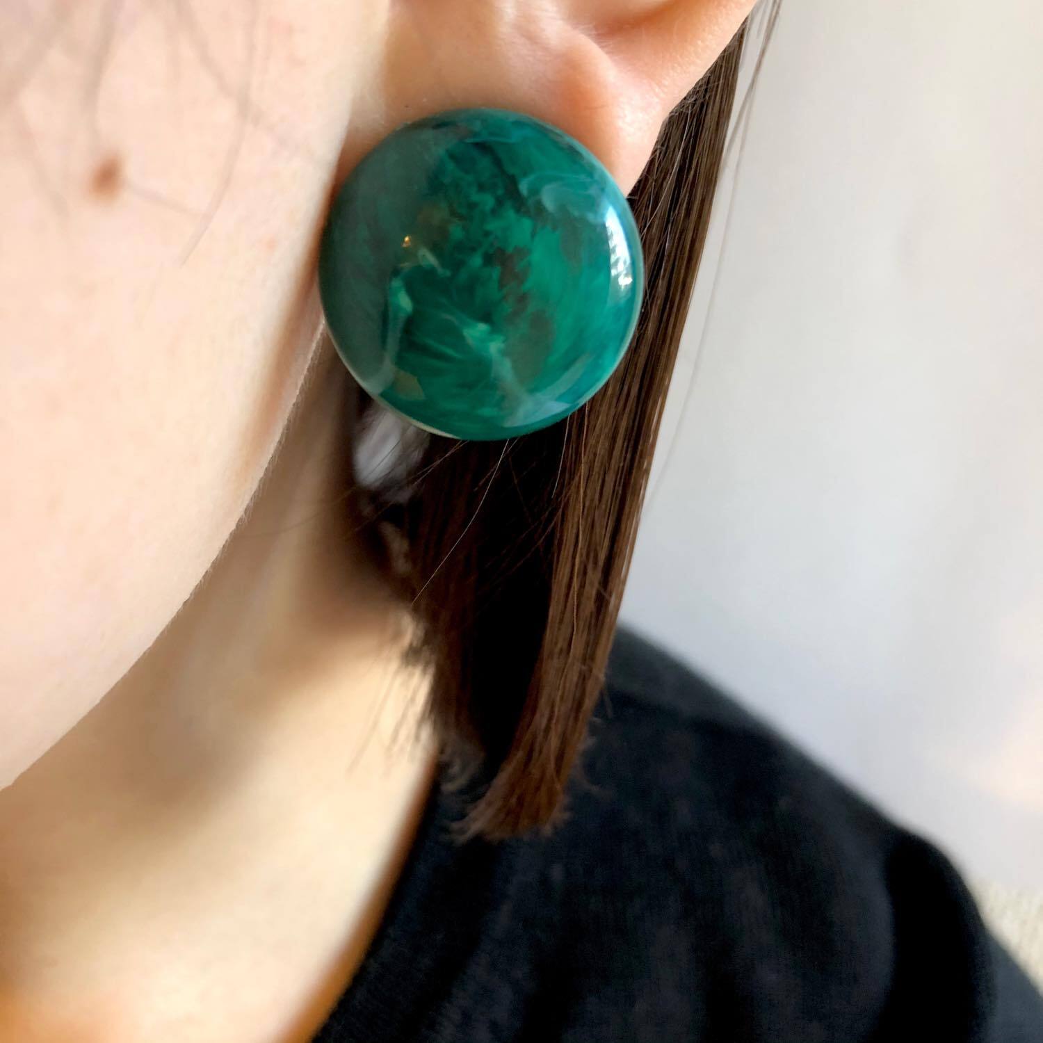 マーブル模様がお洒落なラウンド型の耳飾り。