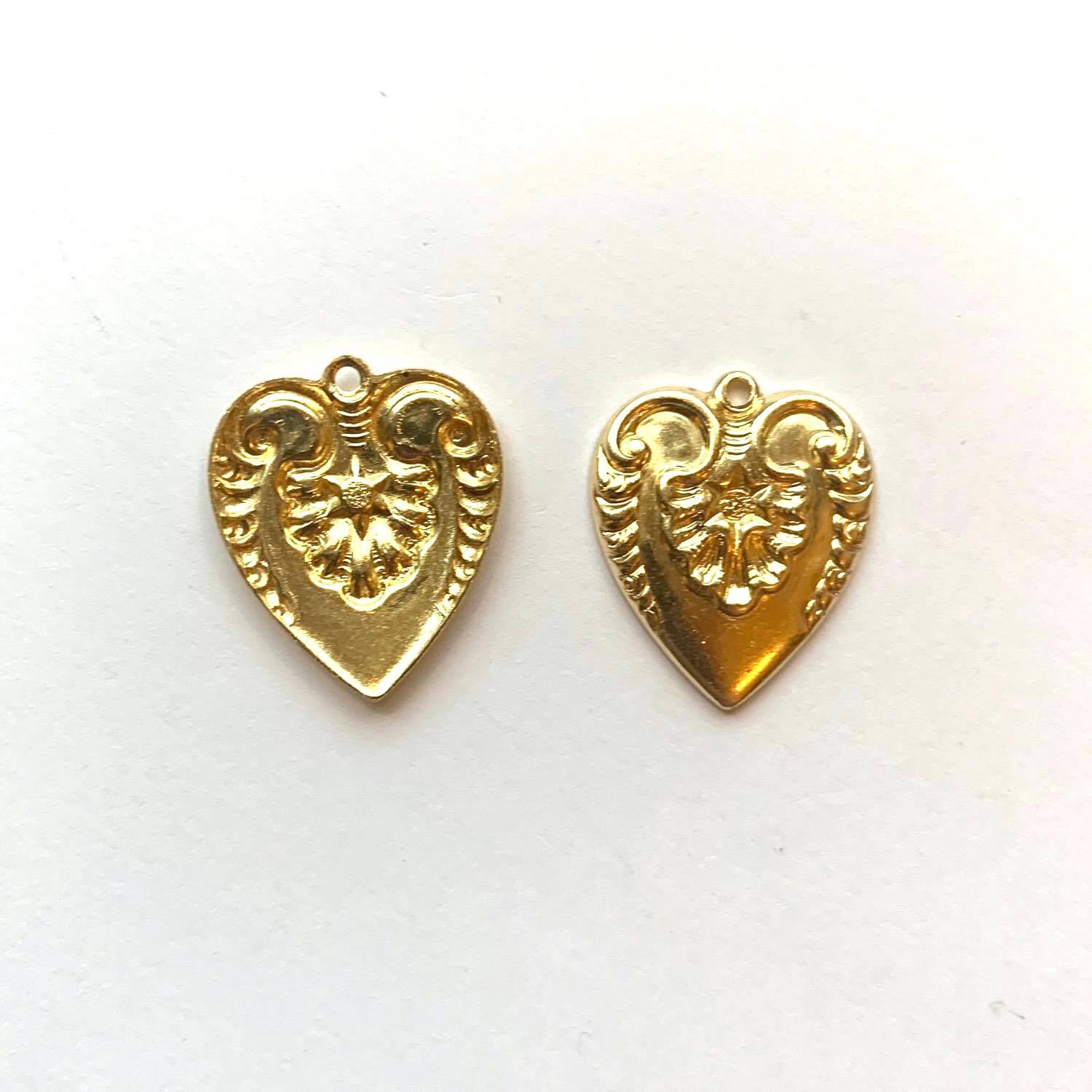 〈再入荷〉USA真鍮 中心花柄ハートチャーム