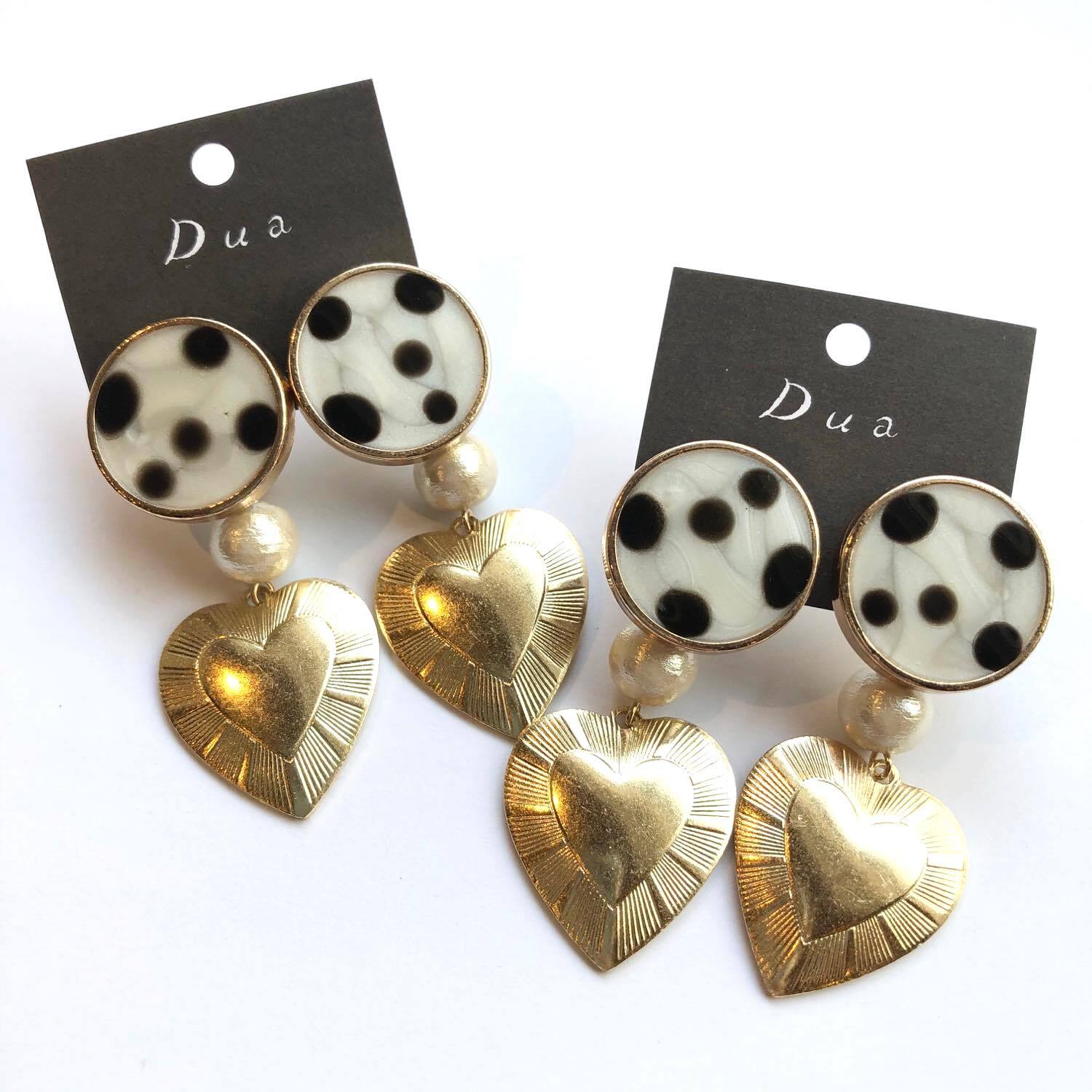 ダルメシアンボタンと真鍮ハートの〈ピアス/イヤリング〉
