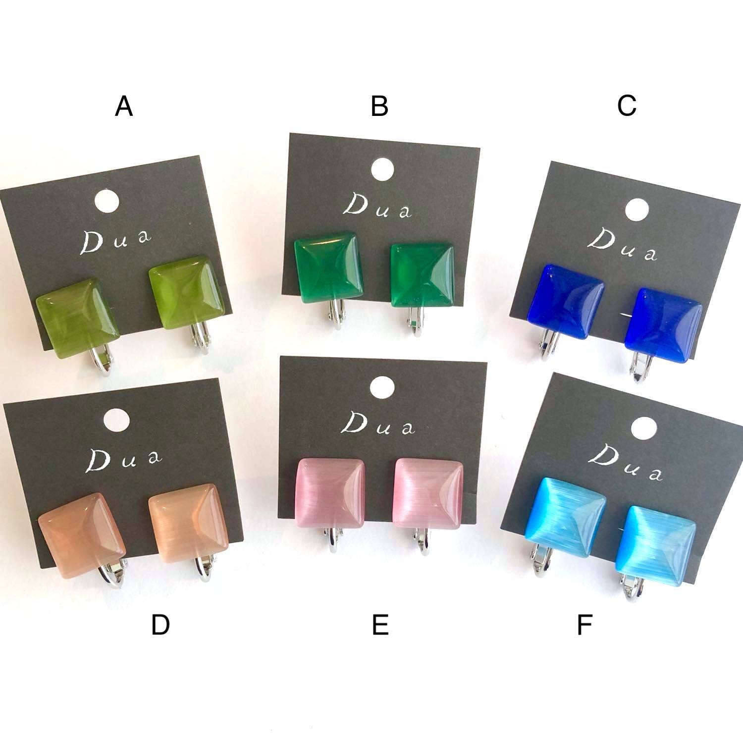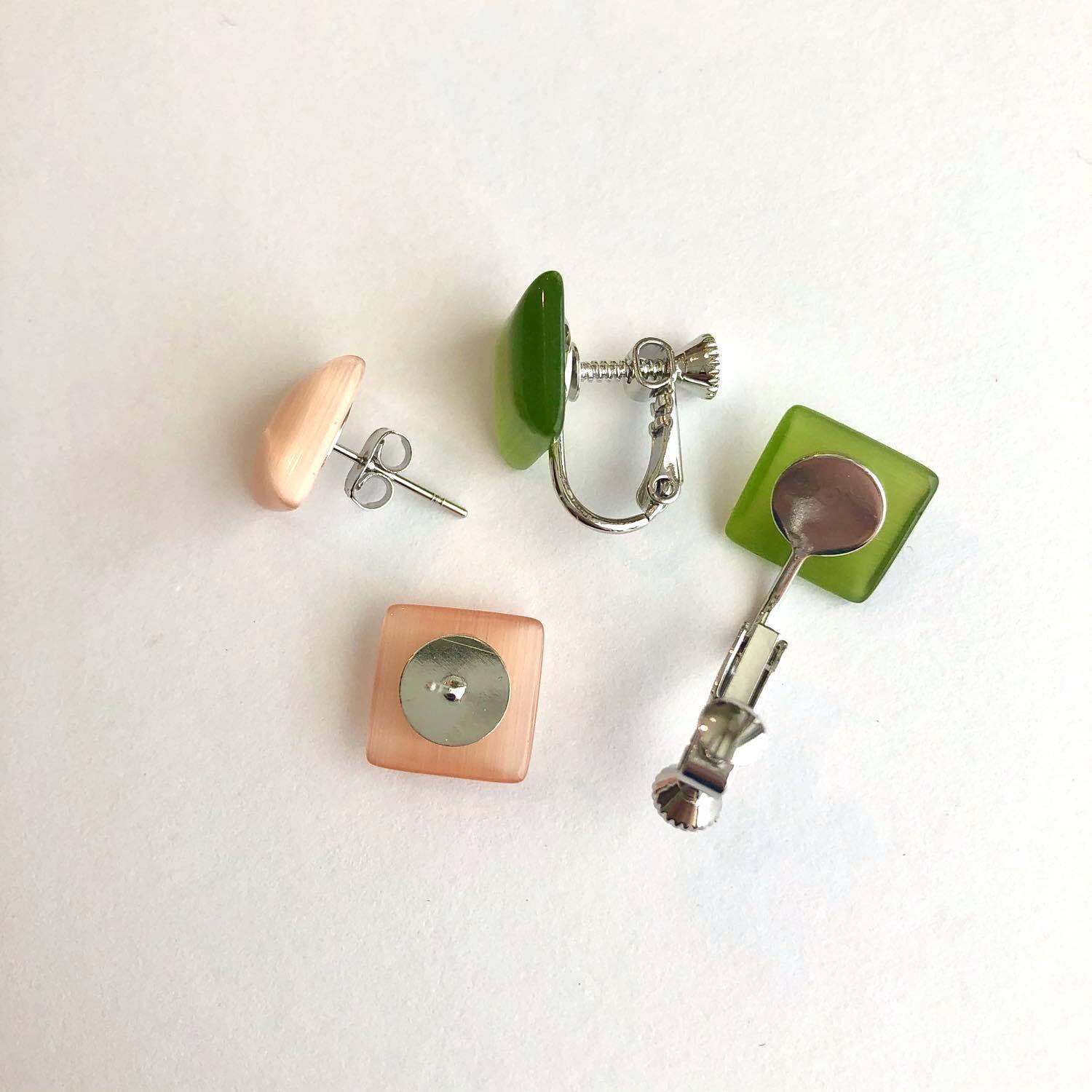 スクエアガラスカボションの〈ピアス/イヤリング〉(11色)