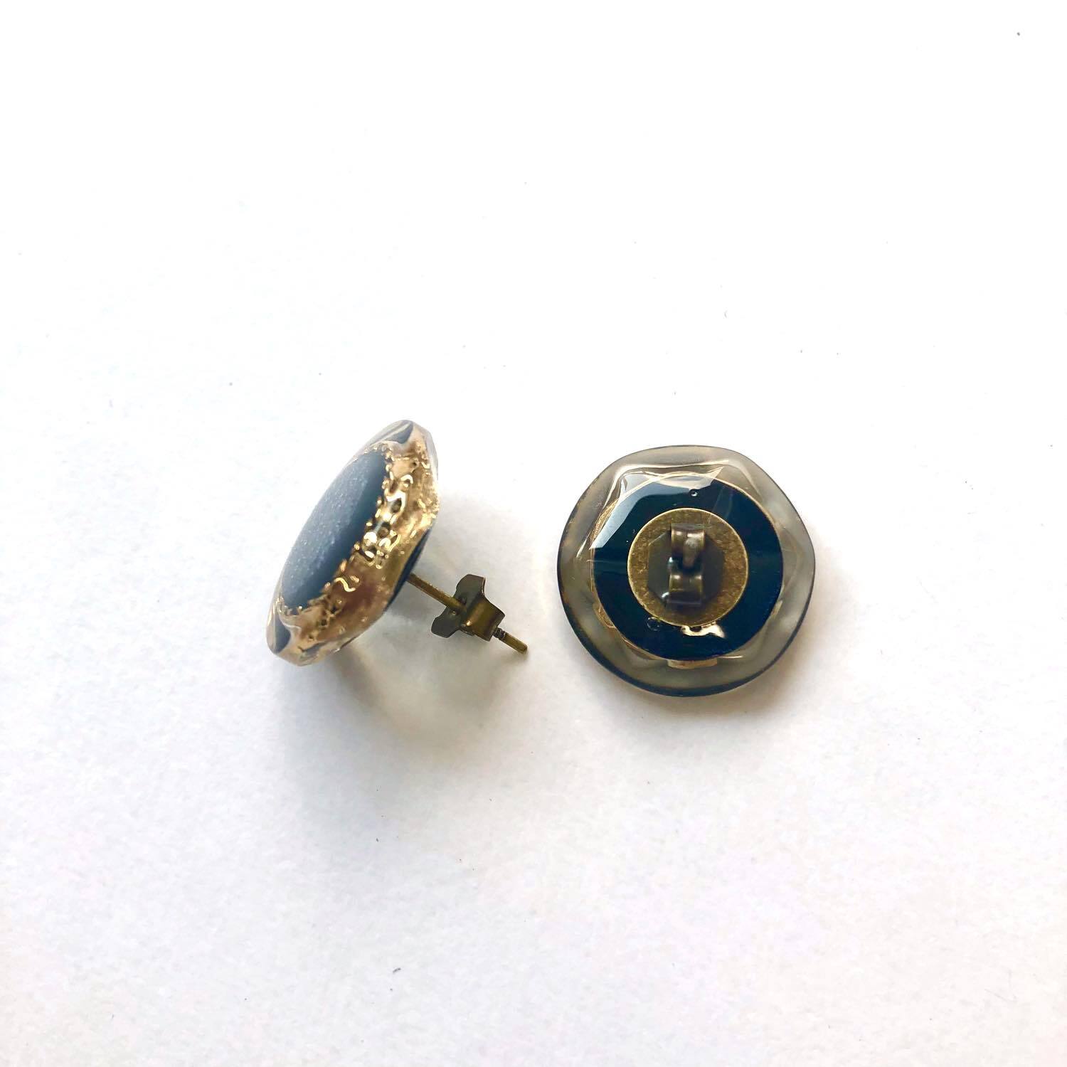 シックなデザインのフランスボタンを使用した耳飾りです。