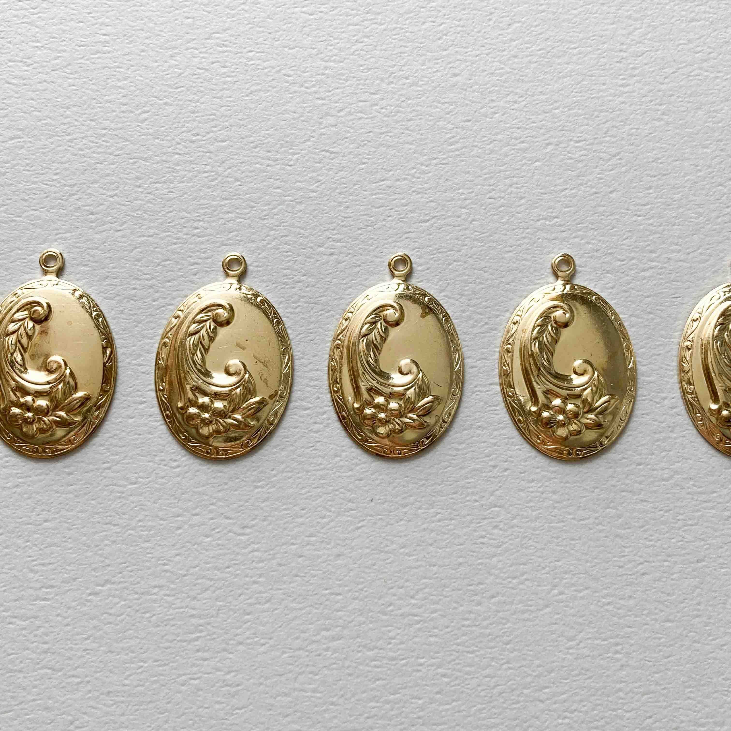 〈最終入荷〉USA真鍮 花模様オーバルチャーム