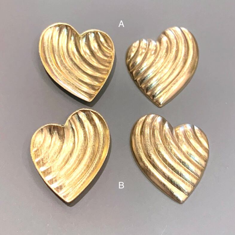 アメリカ製の真鍮スタンピングパーツ。 シンプルながら波紋のような模様があるので動きがでて見えます。 ヘアゴムやリングに仕立てるのもおすすめです。 左右向きががございます。 ■販売単位:1個 ■種類:A左向き、B右向き ■サイズ:約22×17×3mm ■素材:真鍮(ラッカー塗装) ■輸入元:アメリカ合衆国 ■真鍮部分は経年変化により変色いたします。 ■シミのような変色、汚れがある場合がございます。 予めご了承ください。 ■商品コード:A BR00161、B BR00162