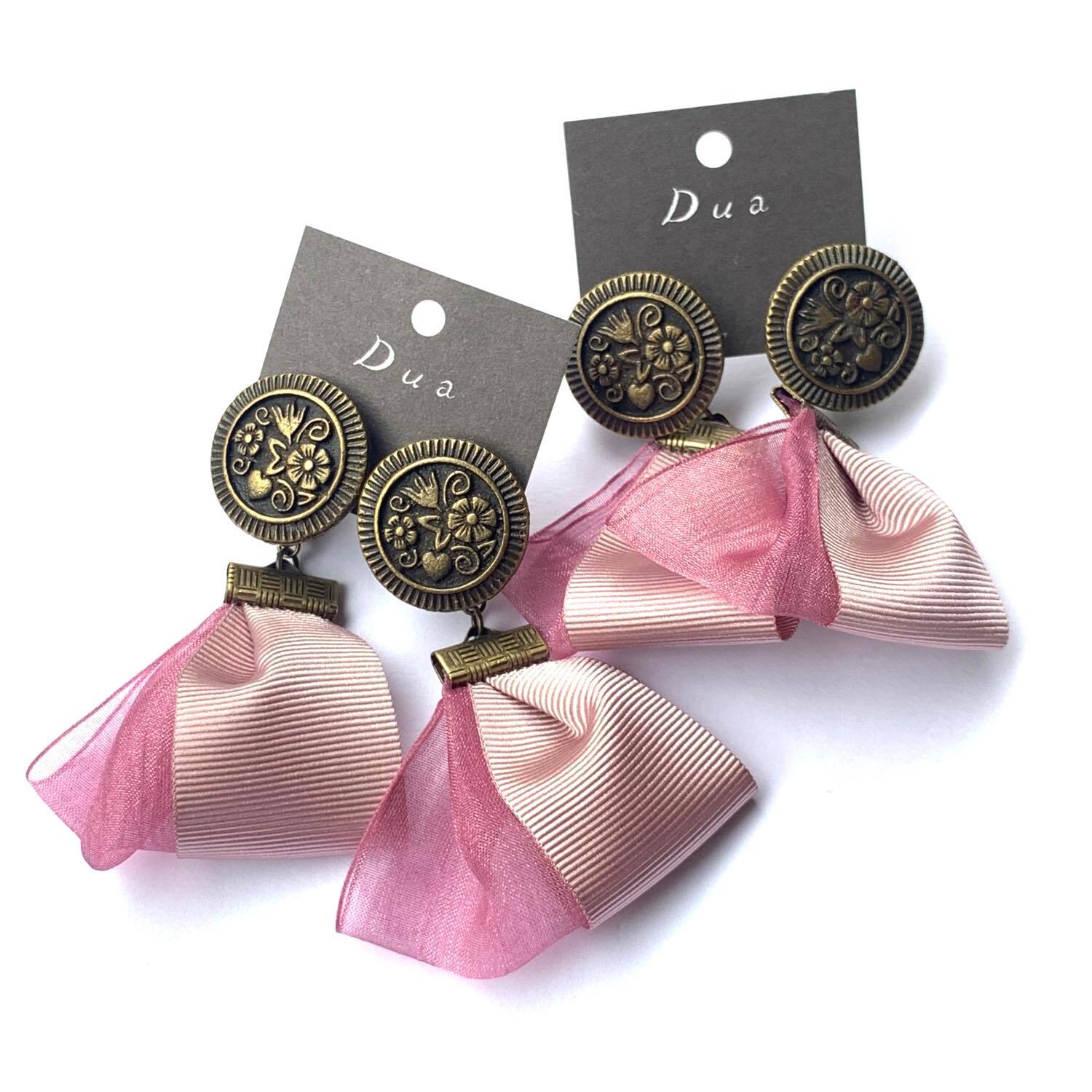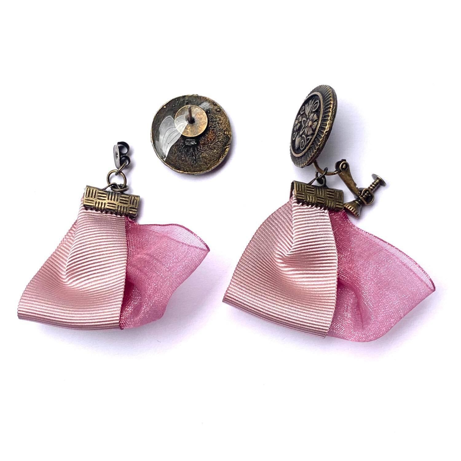 アンティークゴールドトップとのピンクリボンの〈ピアス/イヤリング〉