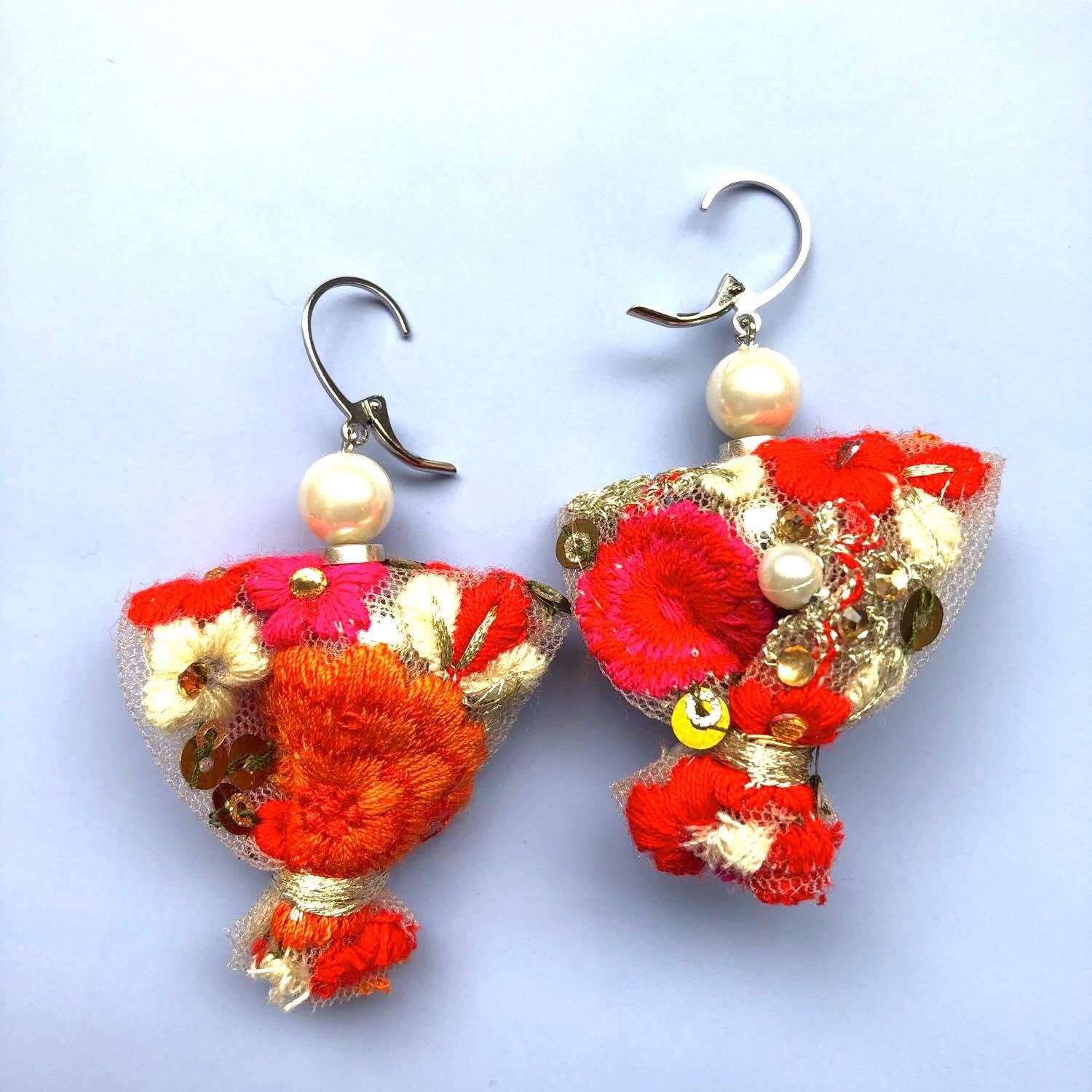 Chii 鮮やかな刺繍リボンのタッセル〈ピアス/イヤリング〉