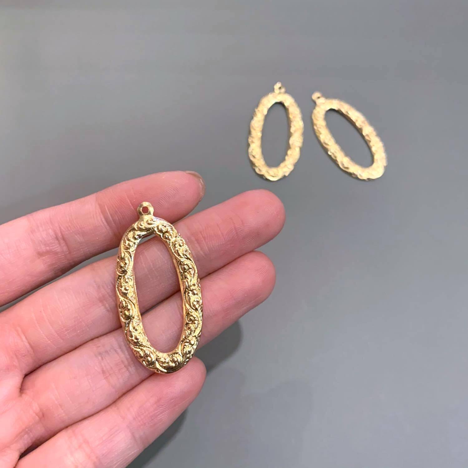 つた模様が豪華な印象のオーバル型フープチャーム。