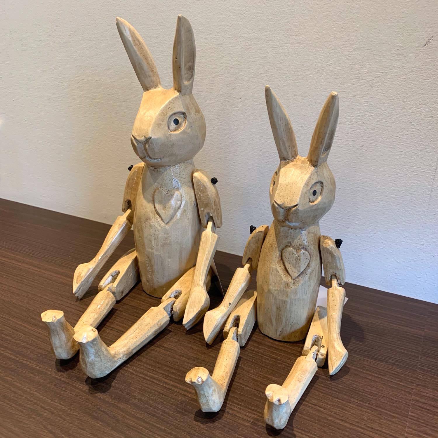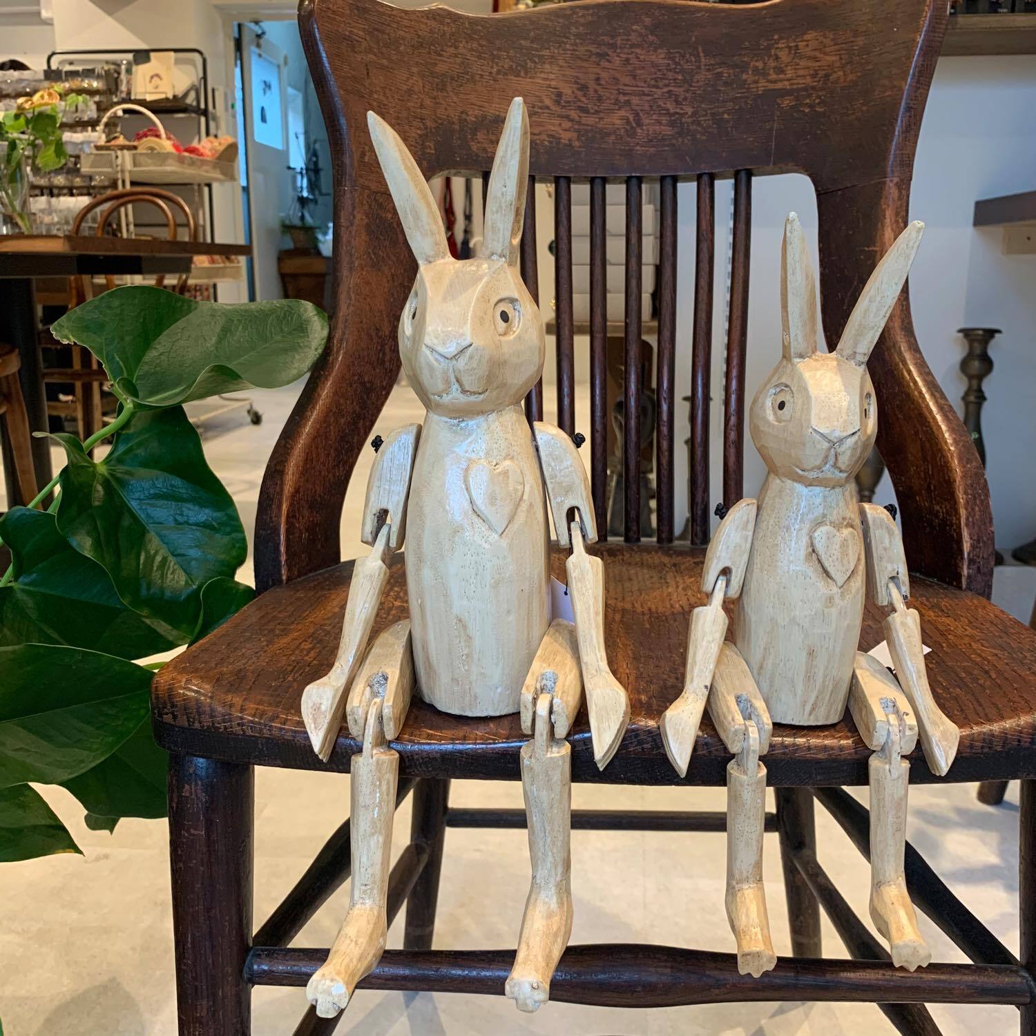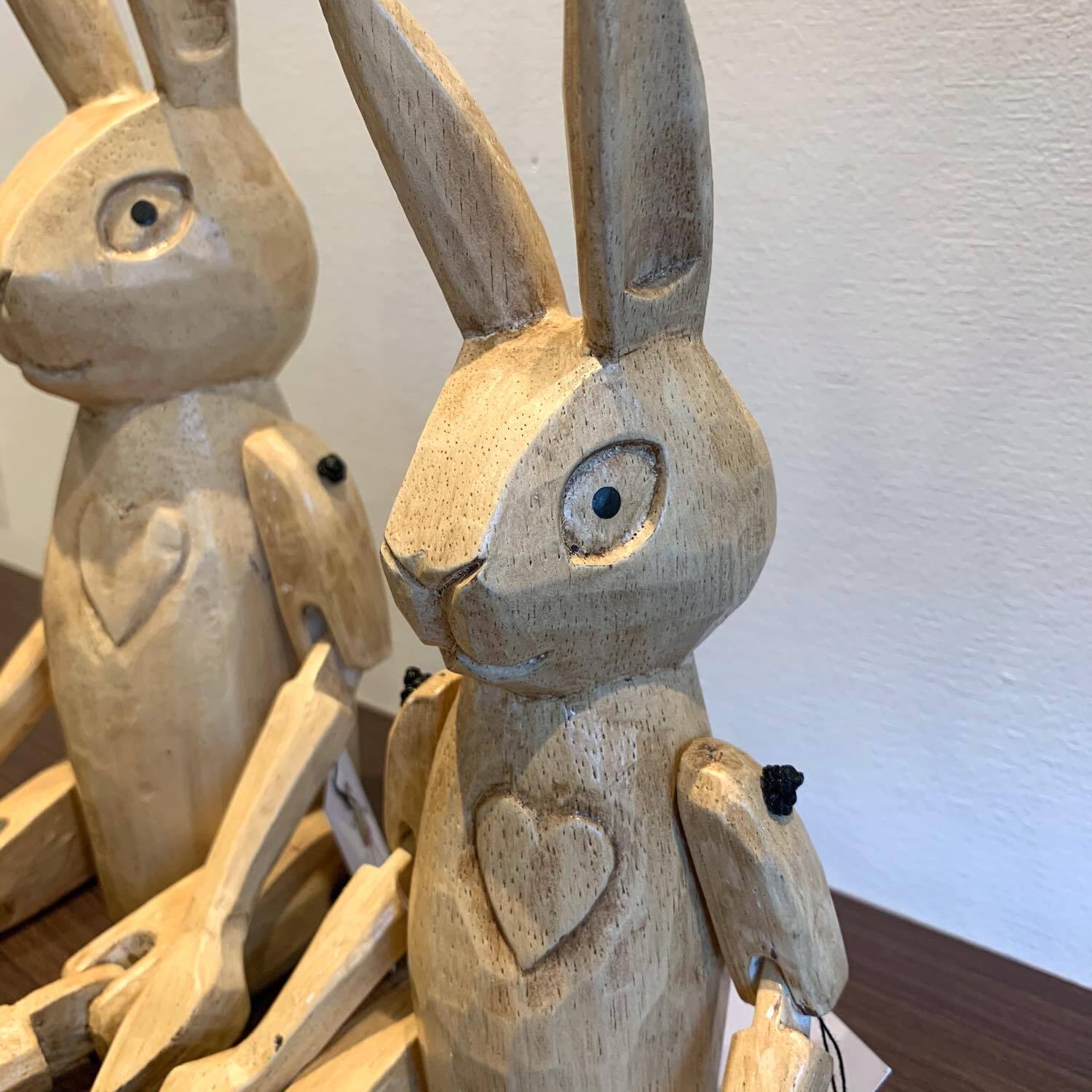 なんとも言えない表情が愛らしい、木彫りのうさぎの人形。