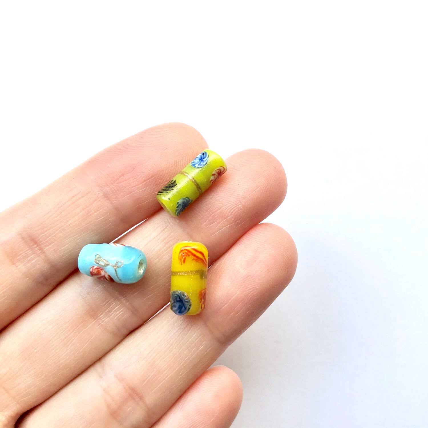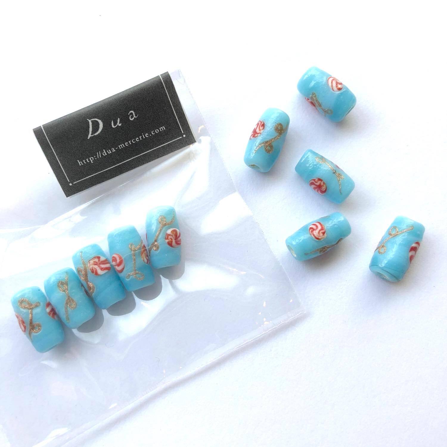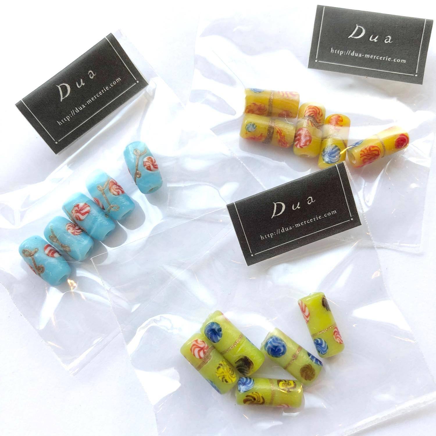 〈再入荷〉朝顔風渦巻き模様の俵型ガラスビーズパック(5p)