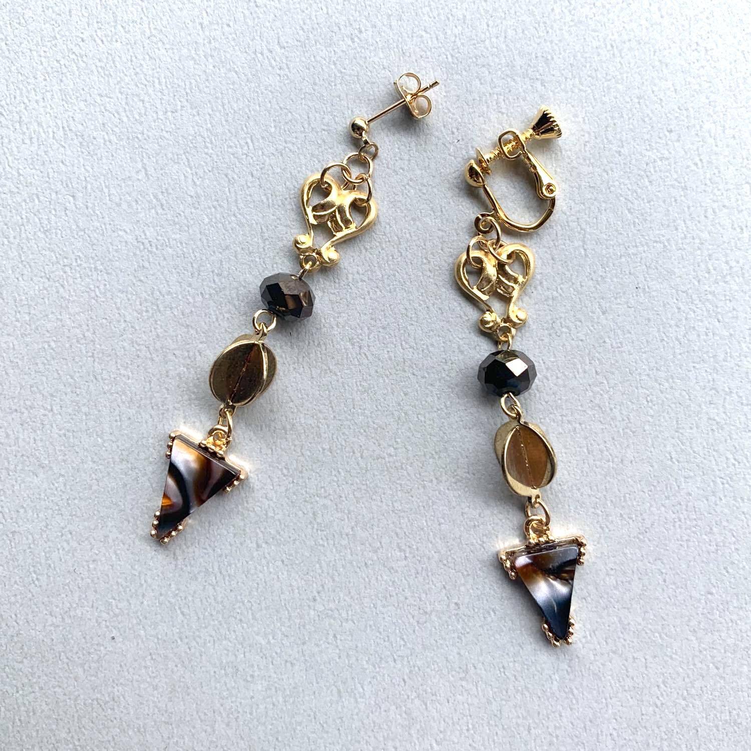 真鍮チャームとマーブルチャームの〈ピアス/イヤリング〉