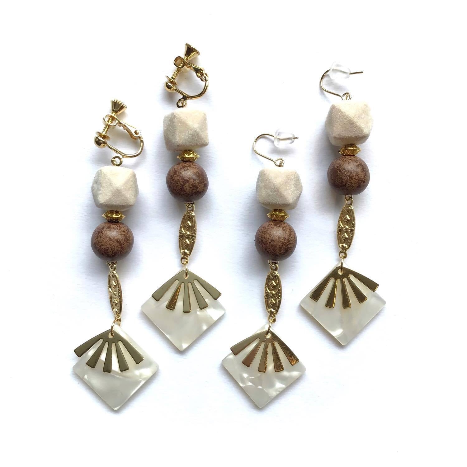 フロッキービーズとアクリル四角チャームの〈ピアス/イヤリング〉