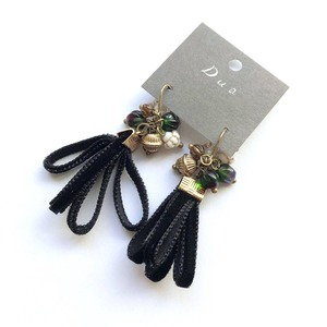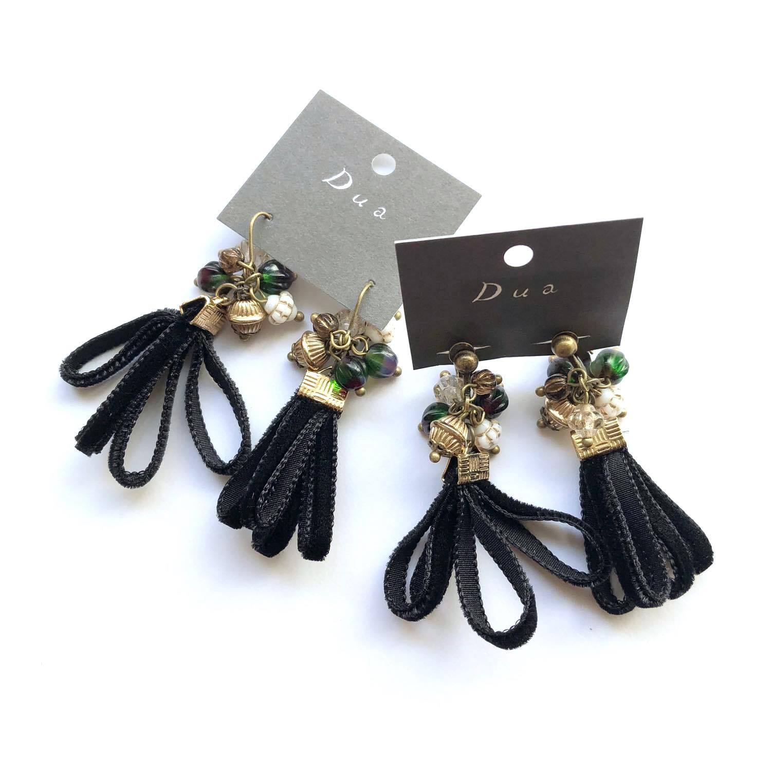 チェコビーズとベロア黒タッセルの〈ピアス/イヤリング〉