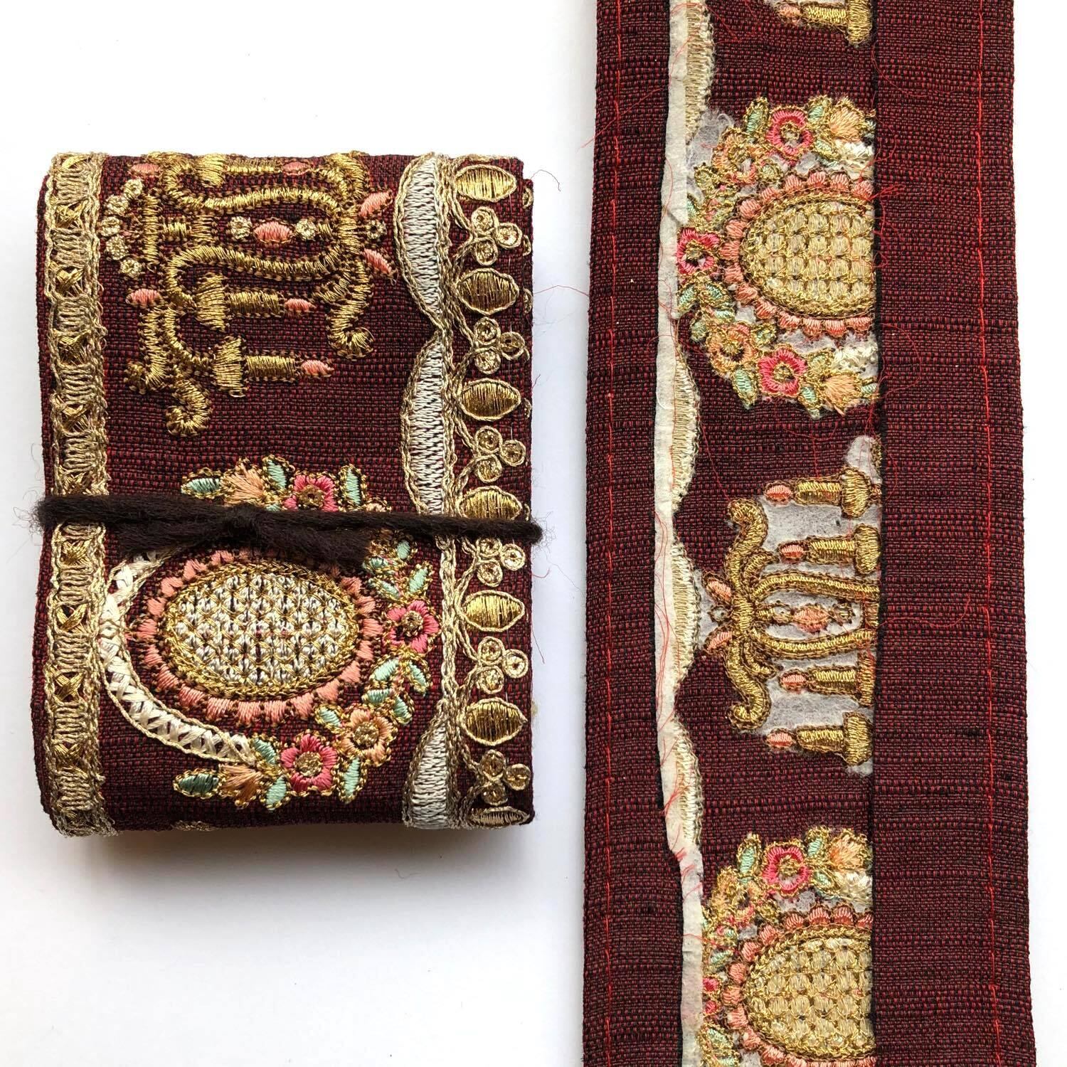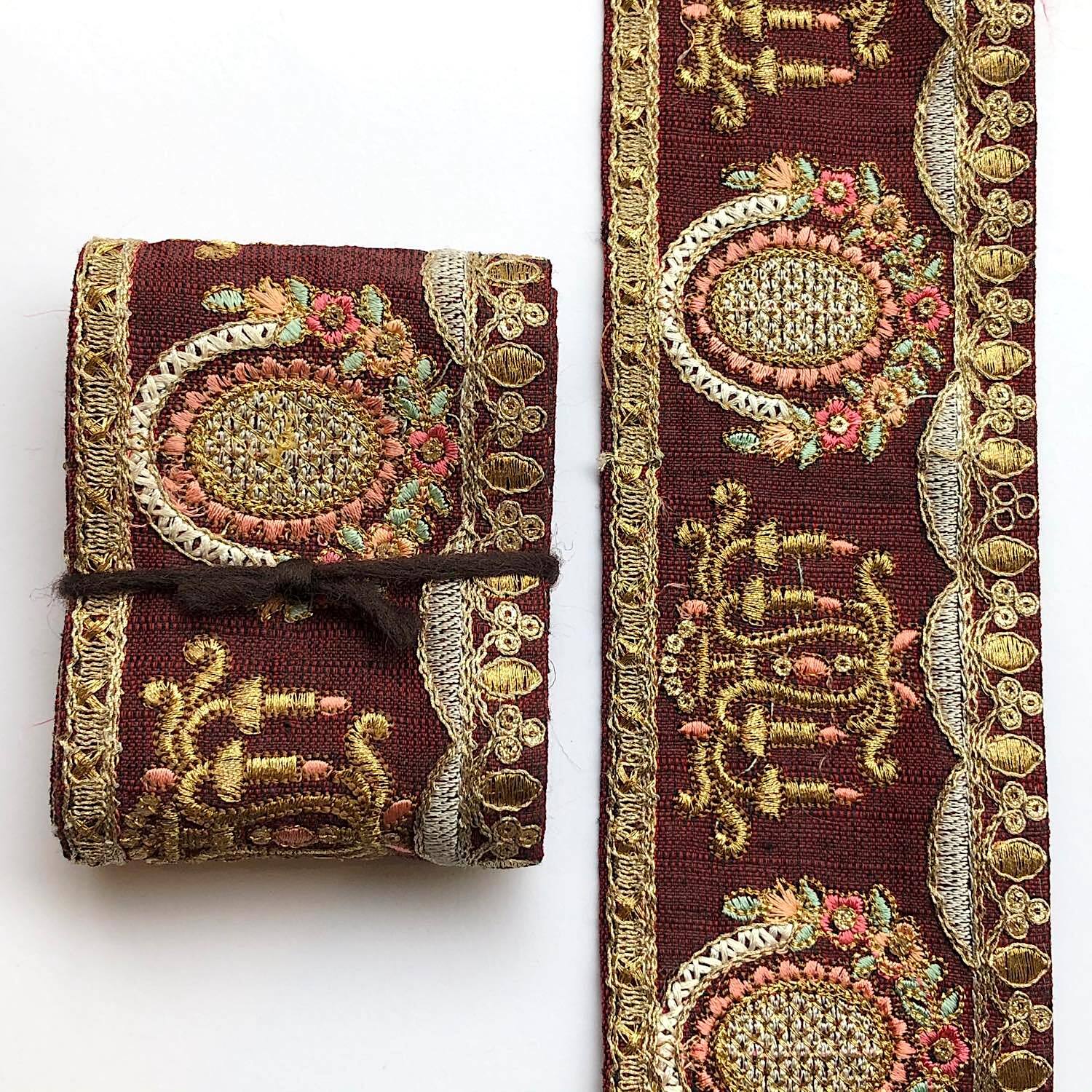 インテリア風柄のインド刺繍の茶色いリボン(1mカット)
