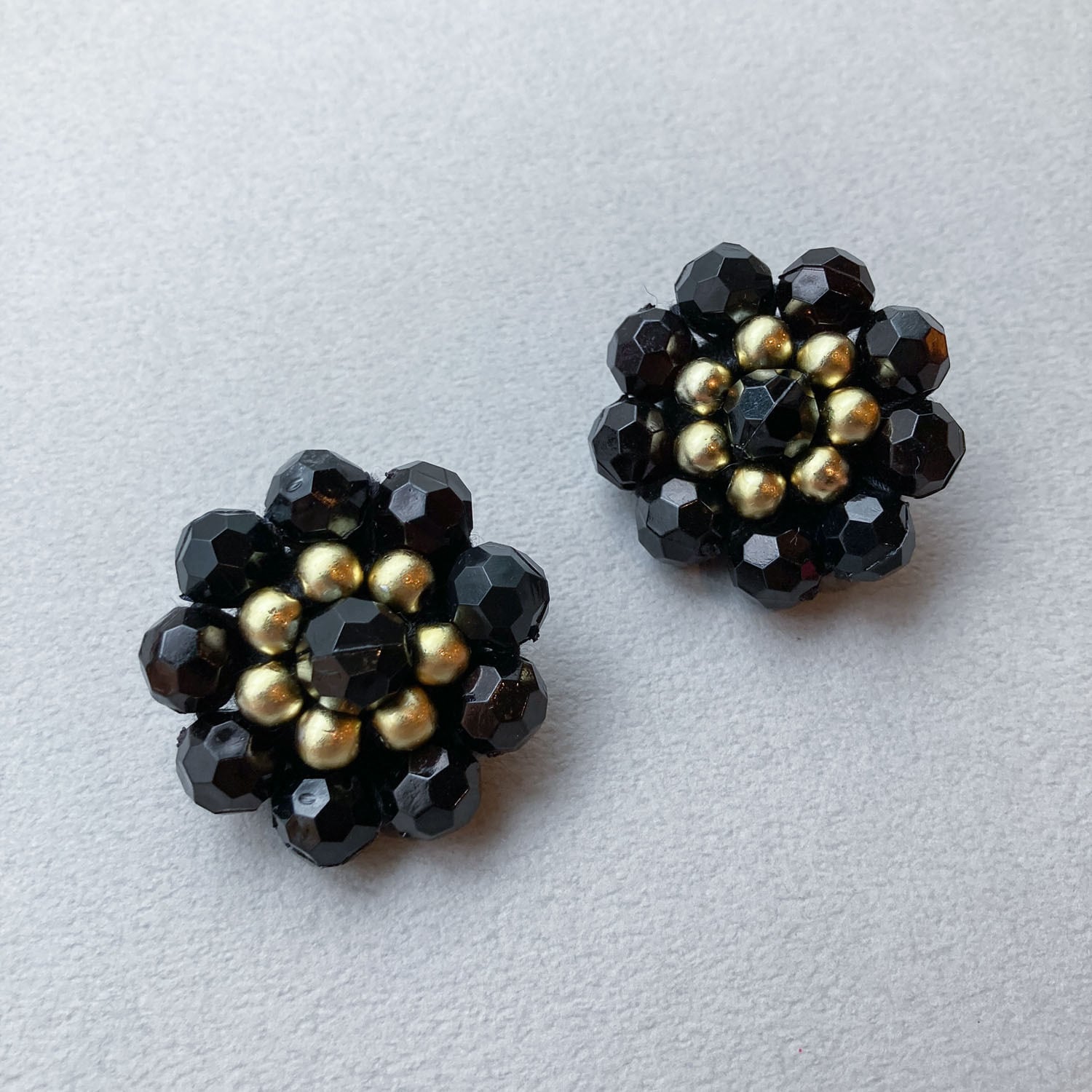 〈再入荷〉ゴールド×黒 大ぶりお花ボタン