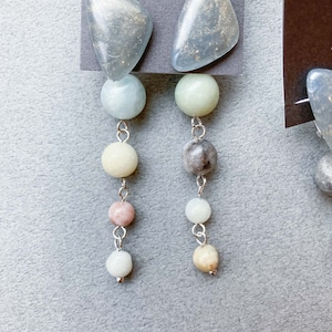 ラメ入りカボションと天然石〈ピアス/イヤリング〉