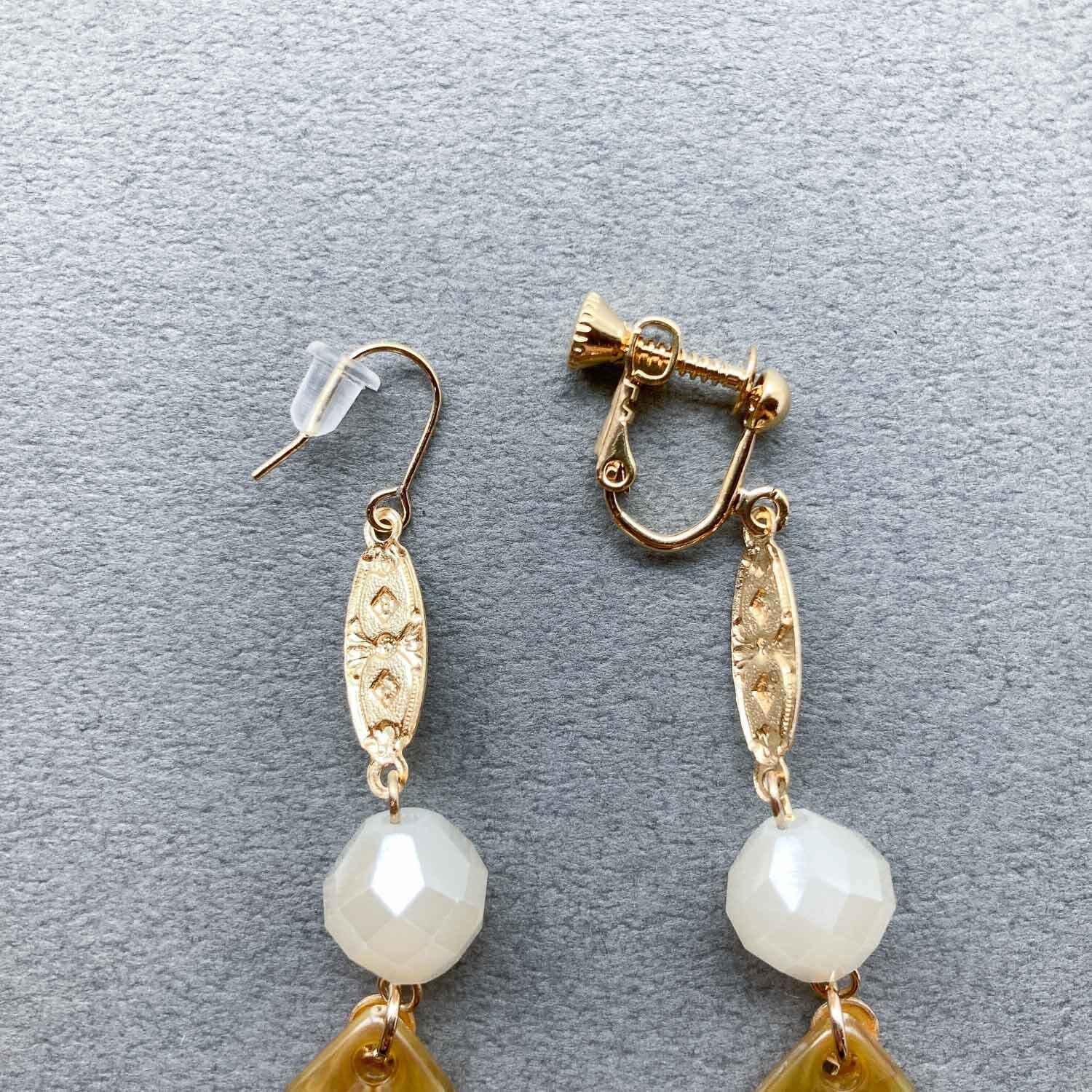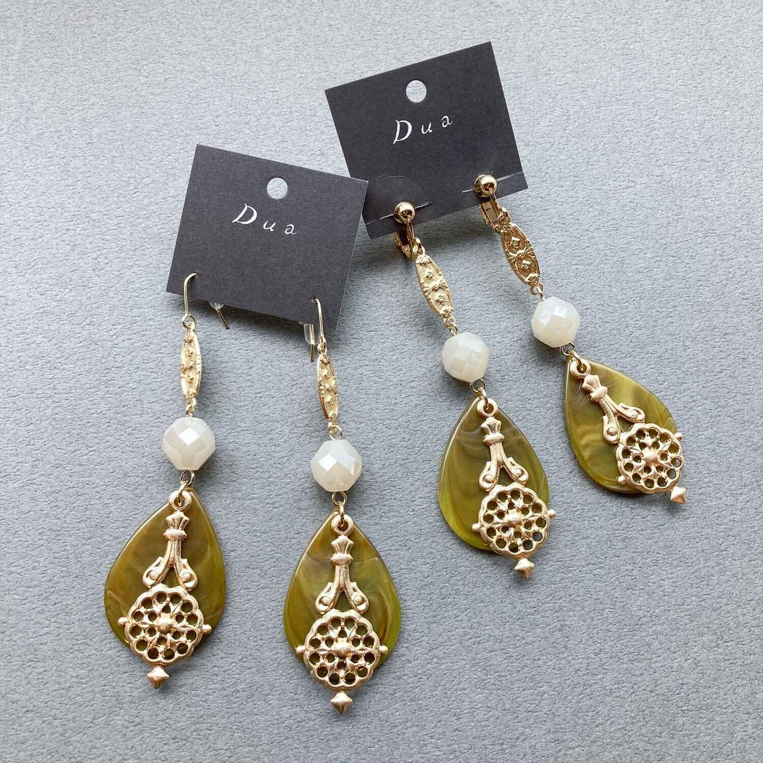 USA真鍮チャームとカーキ色しずくの〈ピアス/イヤリング〉