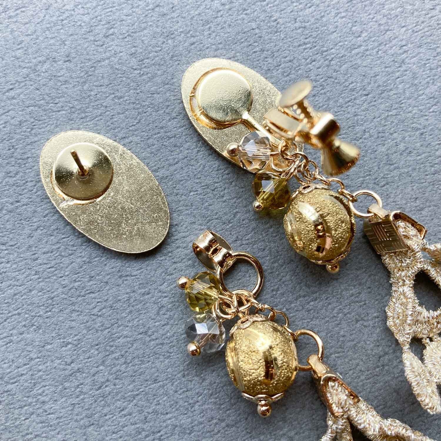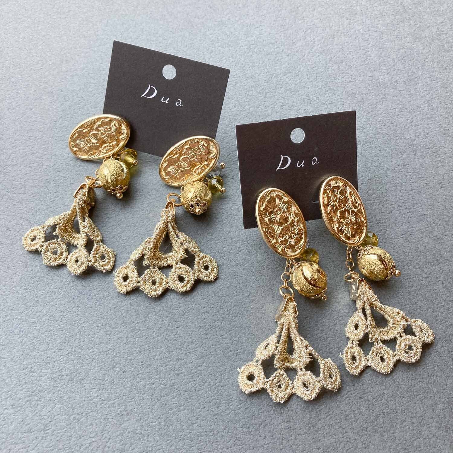 USA真鍮トップとゴールドレースの〈ピアス/イヤリング〉