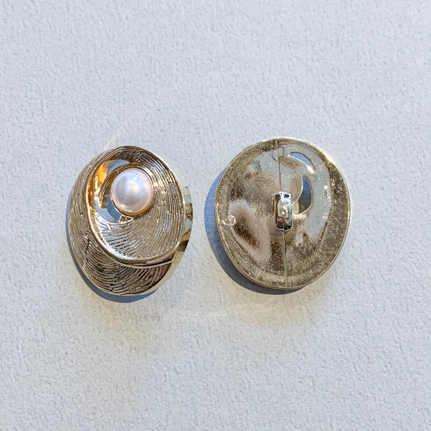 弧を描くゴールドボタンに ちょこんとパールが素敵な組み合わせ。 ■販売単位:1個 ■素材:樹脂 ■サイズ:約28×25×10.5mm ■カラー:パール×ゴールド ■パール部分にスレ、傷がある場合がございます。予めご了承ください。 ■商品コード:BU2103007
