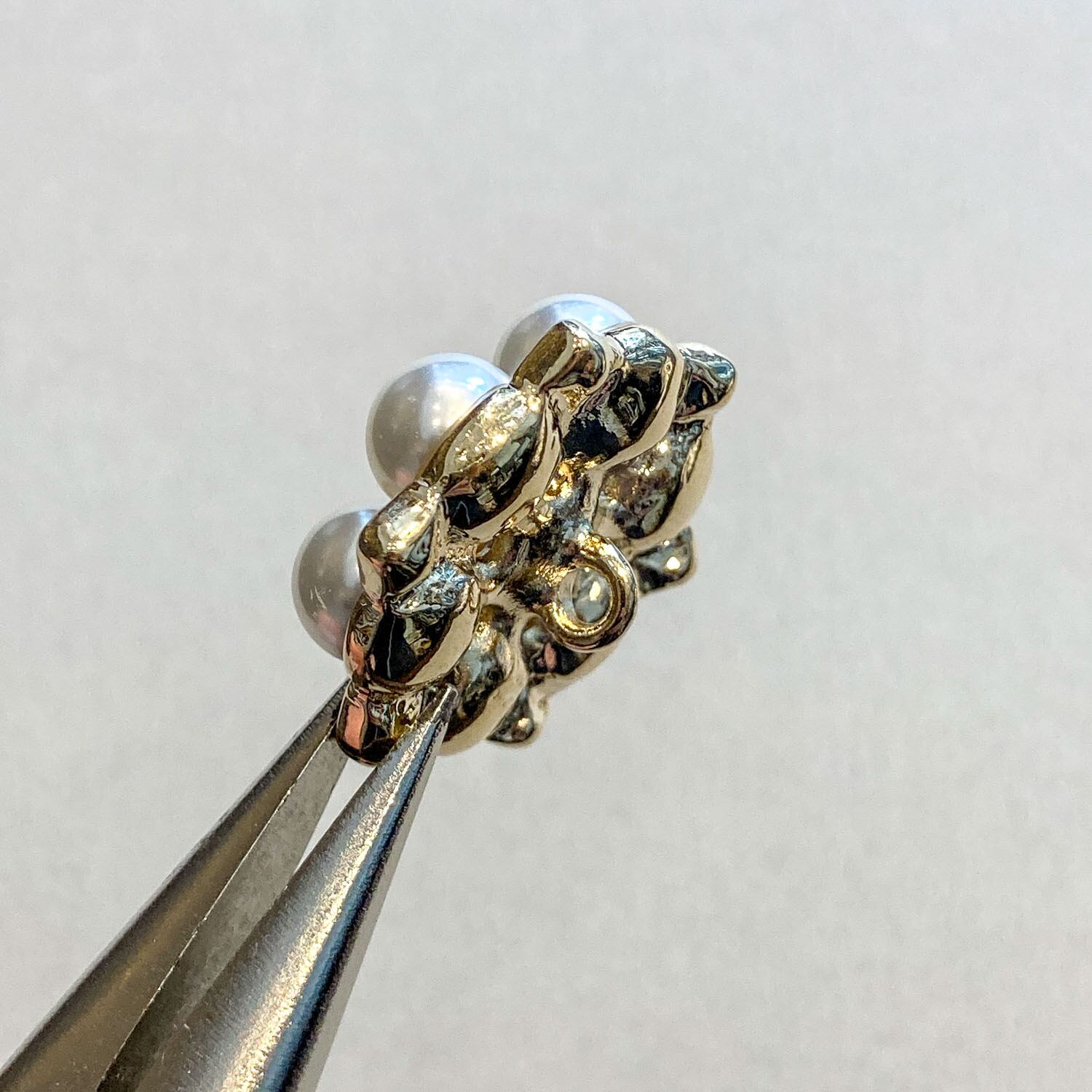 ゴールドのボタンセッティングに6個のパールとビジュー。