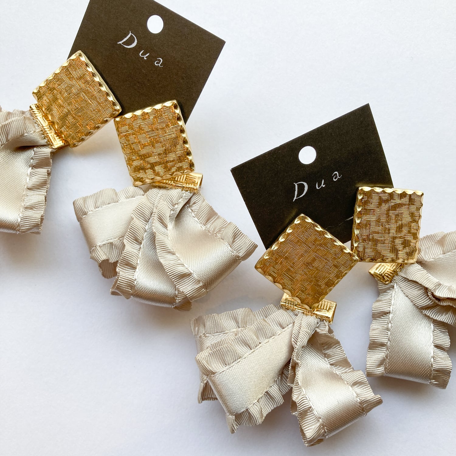 菱形真鍮とフリルリボンの〈ピアス/イヤリング〉